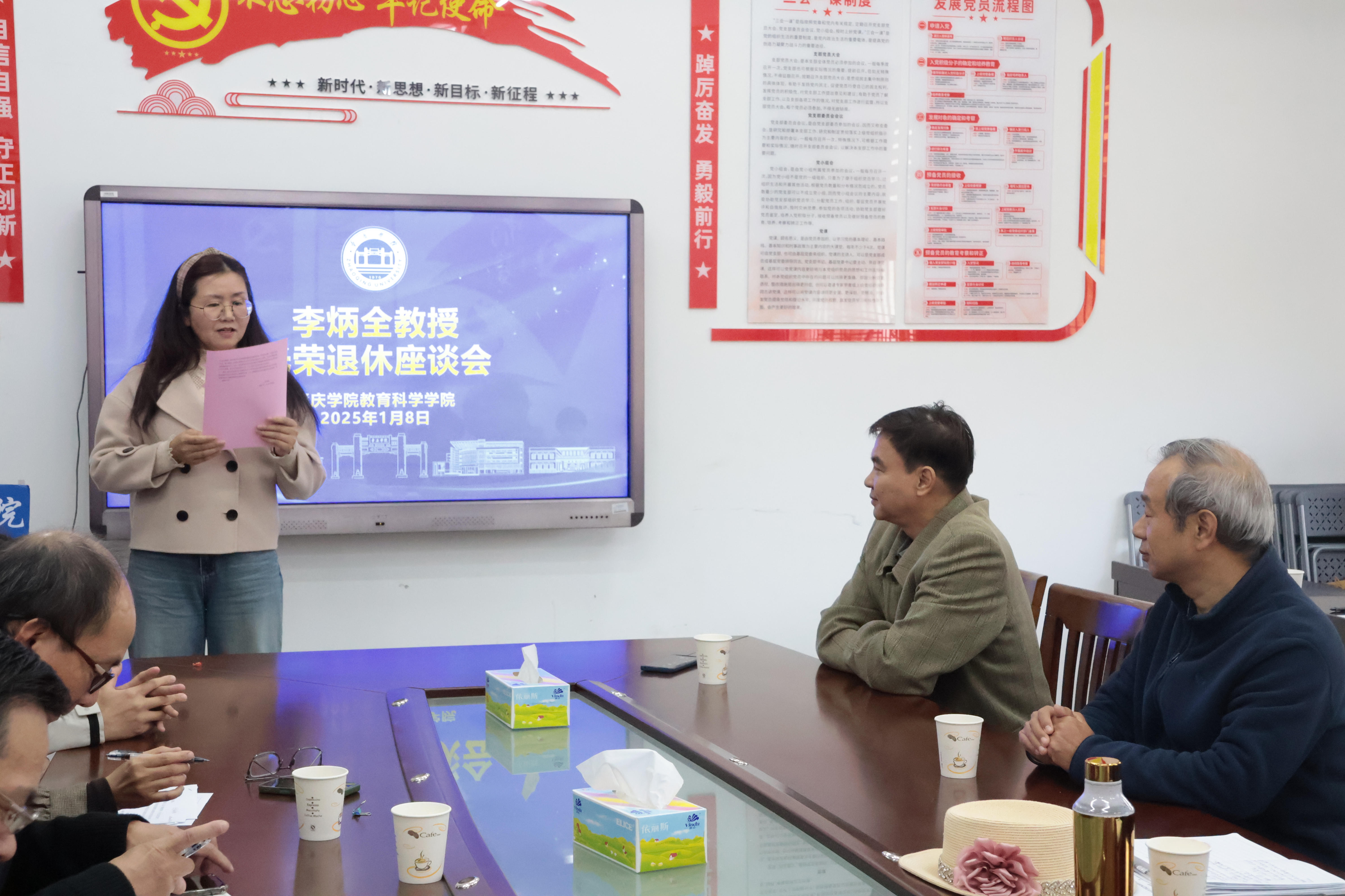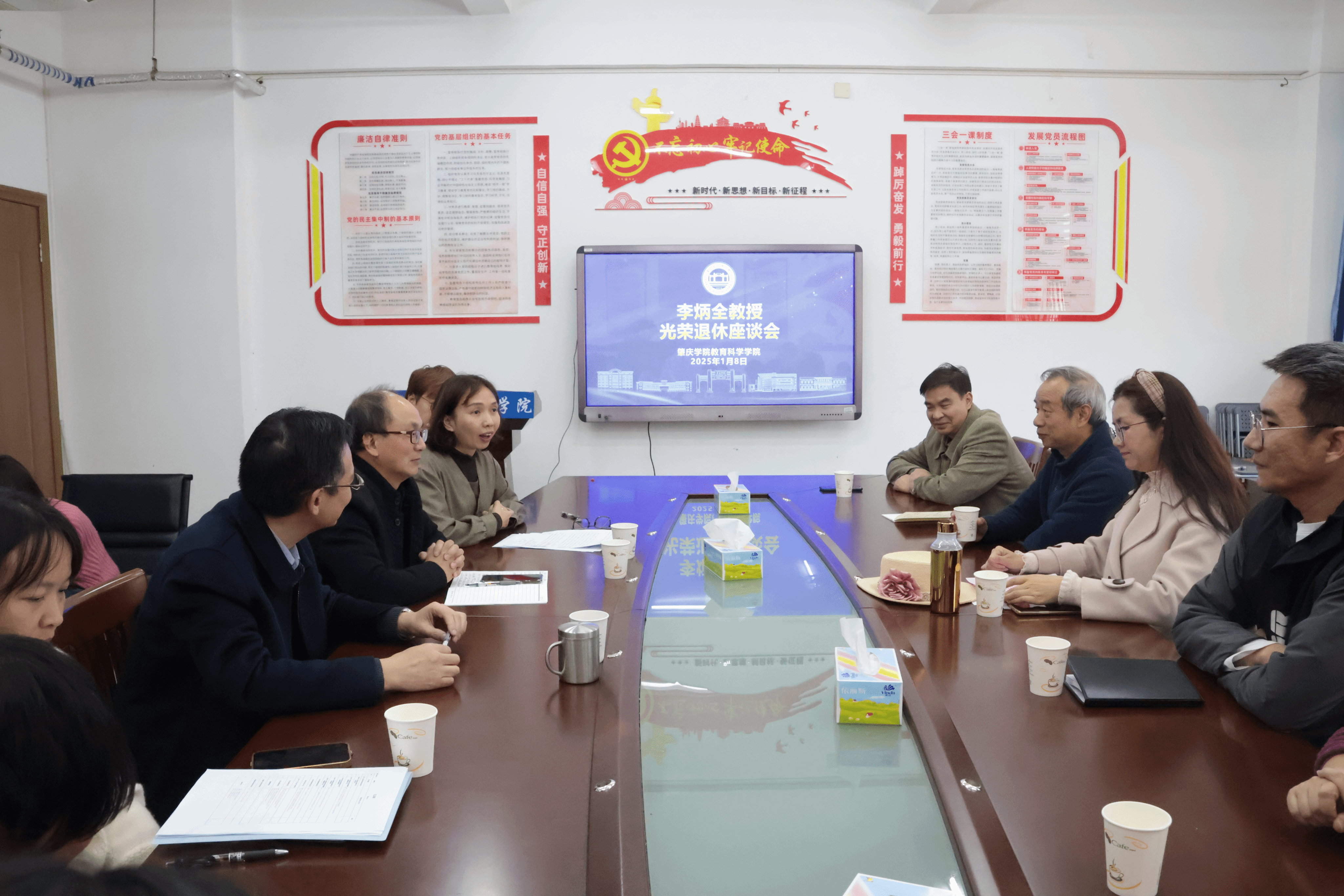 1月8日下午,我院在3教218会议室举行李炳全教授荣休座谈会。会议由党委副书记何秀华主持,领导班子及全体教职工参会。