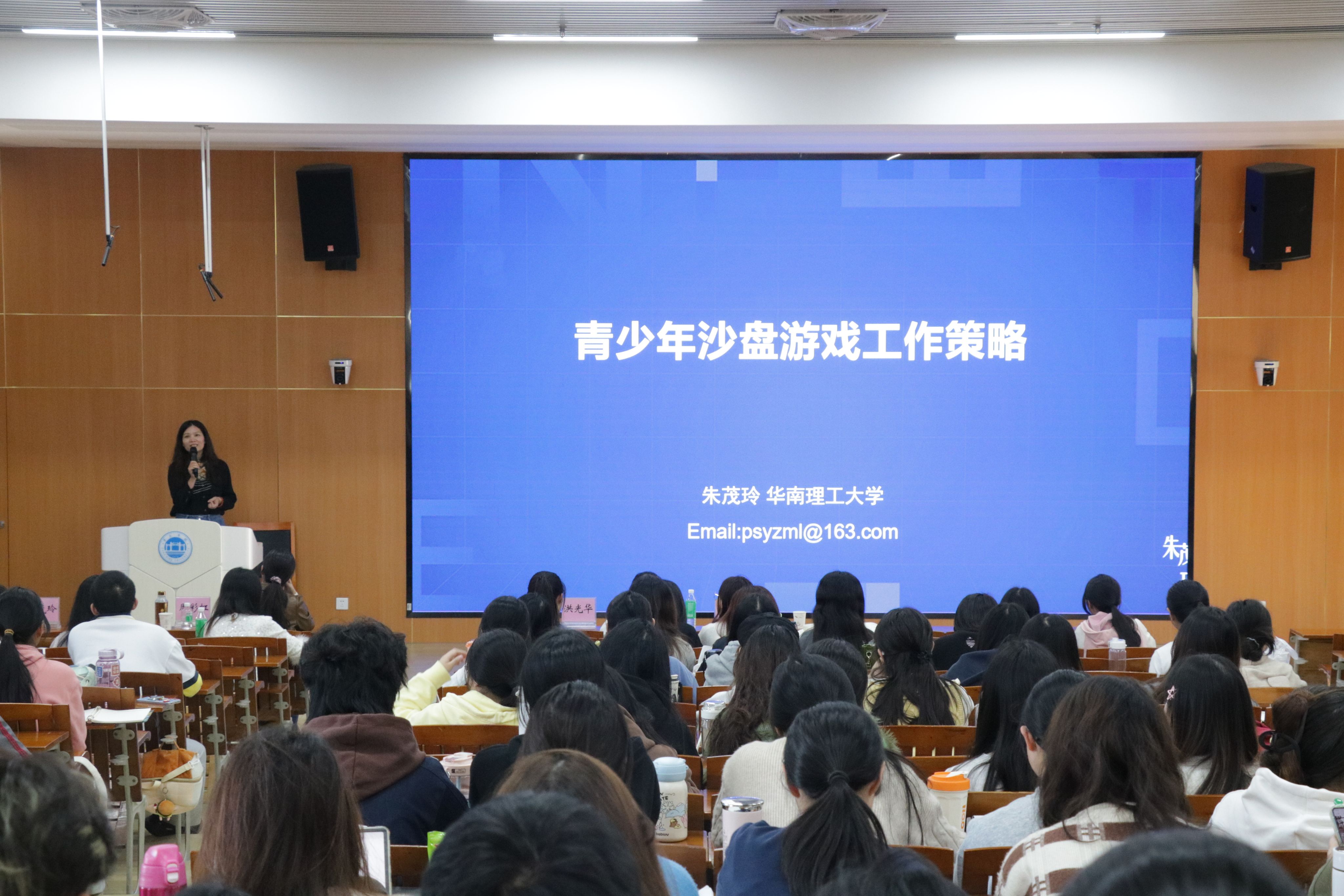 本网讯(通讯员/余晓蓝 郑心仪 责编/陈慧妍)为深化应用心理学学生的理论认知和提升专业素养,11月29日下午,我院在第二教学楼704教室举办主题为“青少年沙盘游戏工作策略“讲座。该讲座特邀华南理工大学副教授朱茂玲博士主讲,应用心理学专业负责人周彩虹主持。