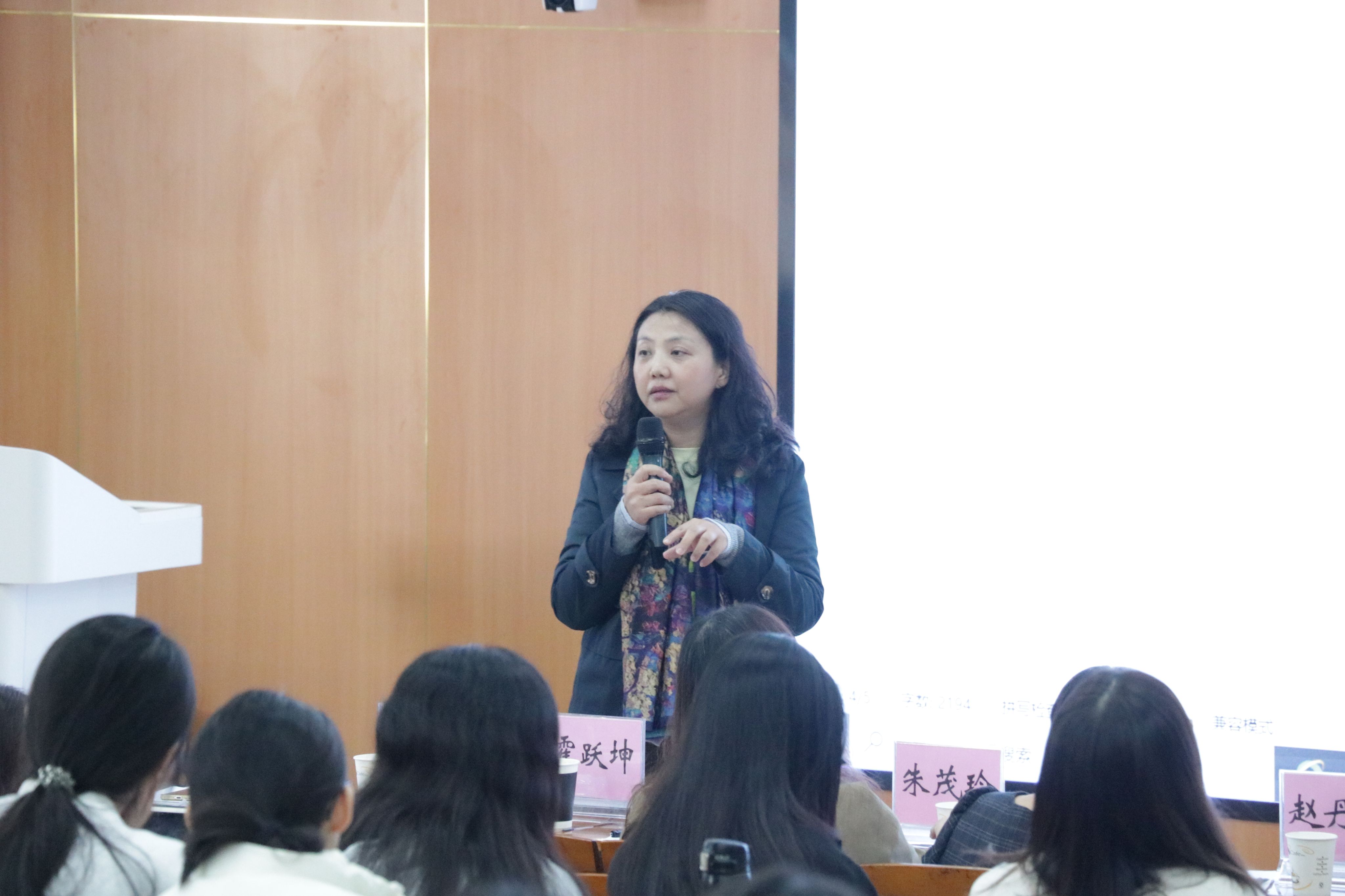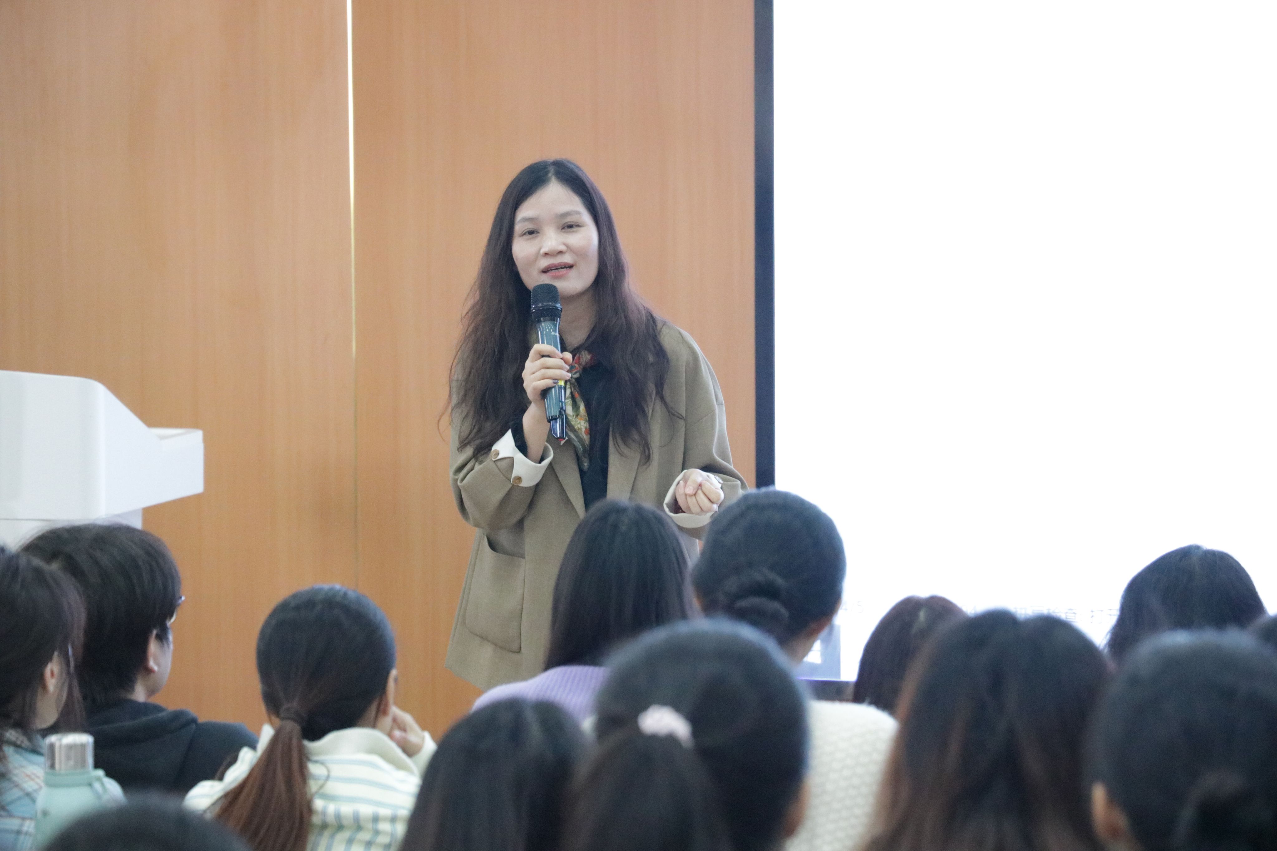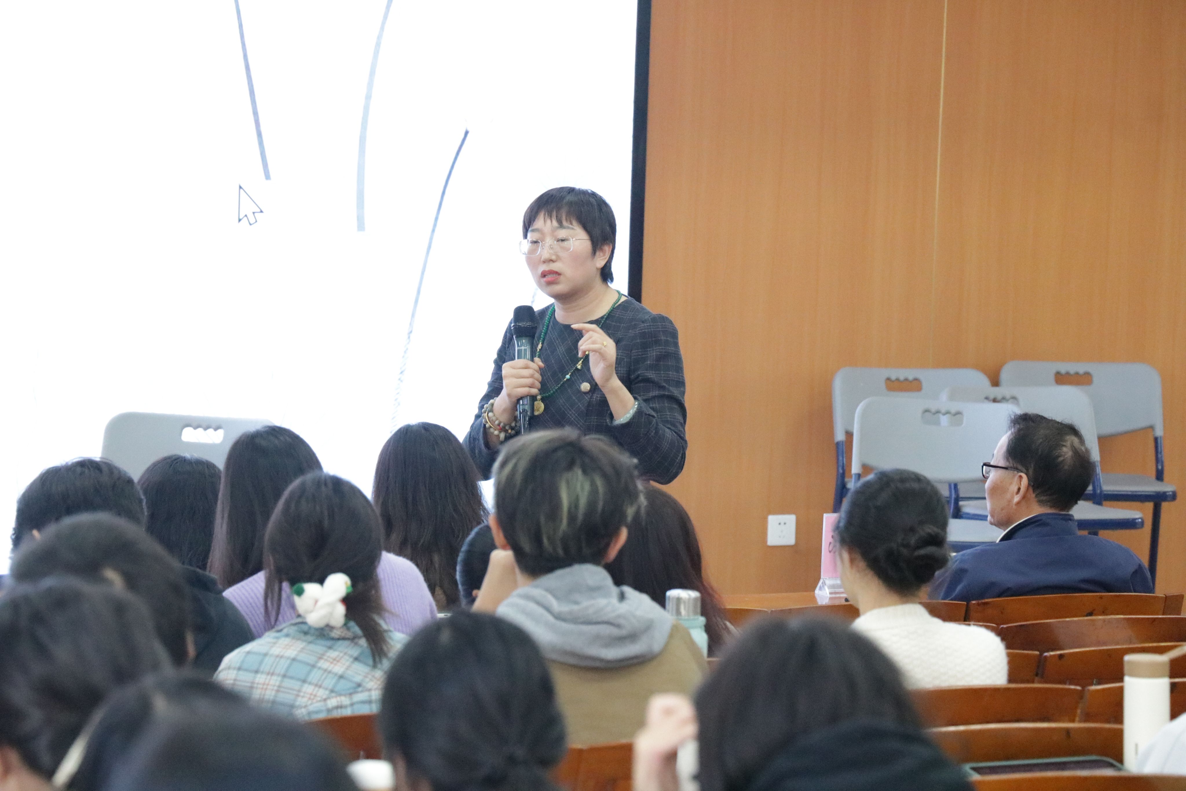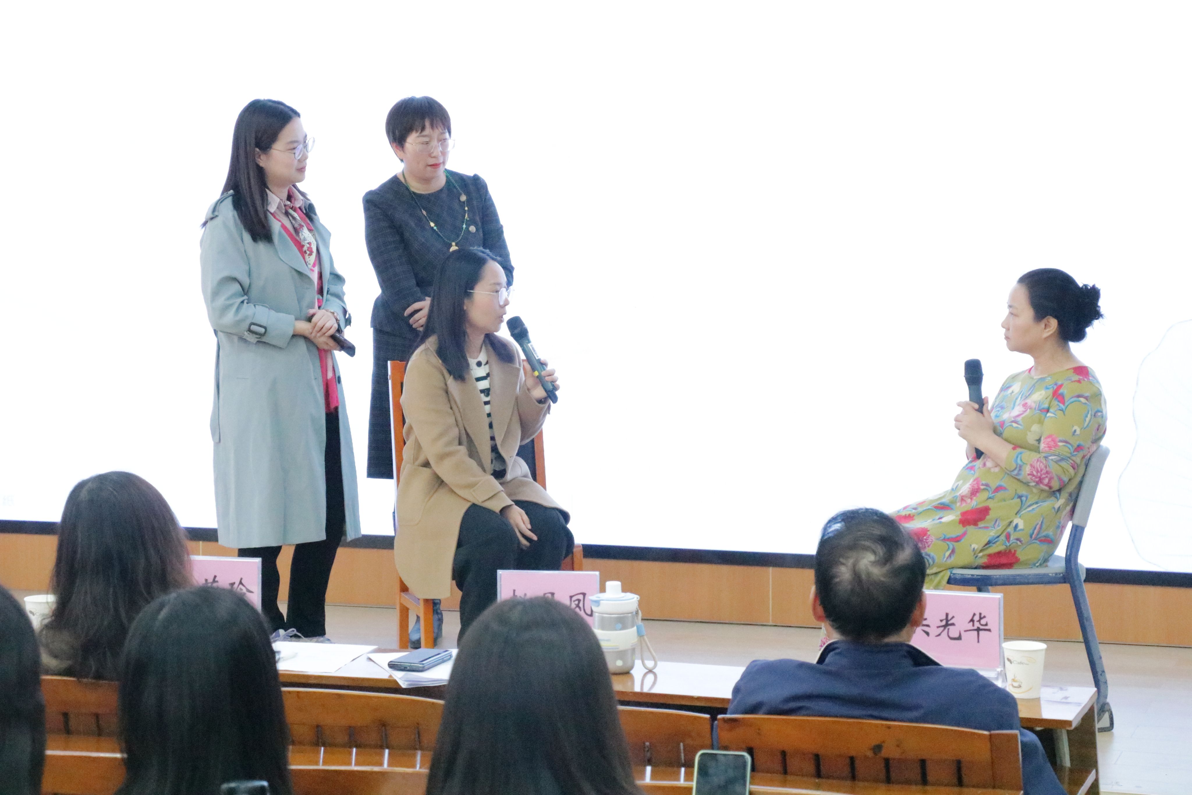 活动中,陈文彦老师结合她作为中学老师时亲身经历的一次心理辅导,提出除了认知行为疗法之外的其他心理辅导方法,并针对家庭干预、来访者移情等问题进行提问。基于案例,4位嘉宾分别从不同的角度和方法进行了不同类型心理辅导的演绎。赵丹凤通过现场演绎,展示了如何运用演绎心理剧的方式来进行心理辅导,并与同学们进行现场互动,提出要着重改变案例中来访者的认知。朱茂玲侧重于家庭干预方面的问题,提出心理辅导要服务于主体,强调开始心理辅导前应对来访者的心理状态进行评估。霍跃坤强调要提高来访者关注自我心灵的意识,要增强来访者自我与世界的联系,帮助他们关注自我与超我的关系,可以通过增加沙盘的方式来进行辅导。洪光华强调教育的原则是“爱”,要重点关注如何让爱体现在同学们的身上。