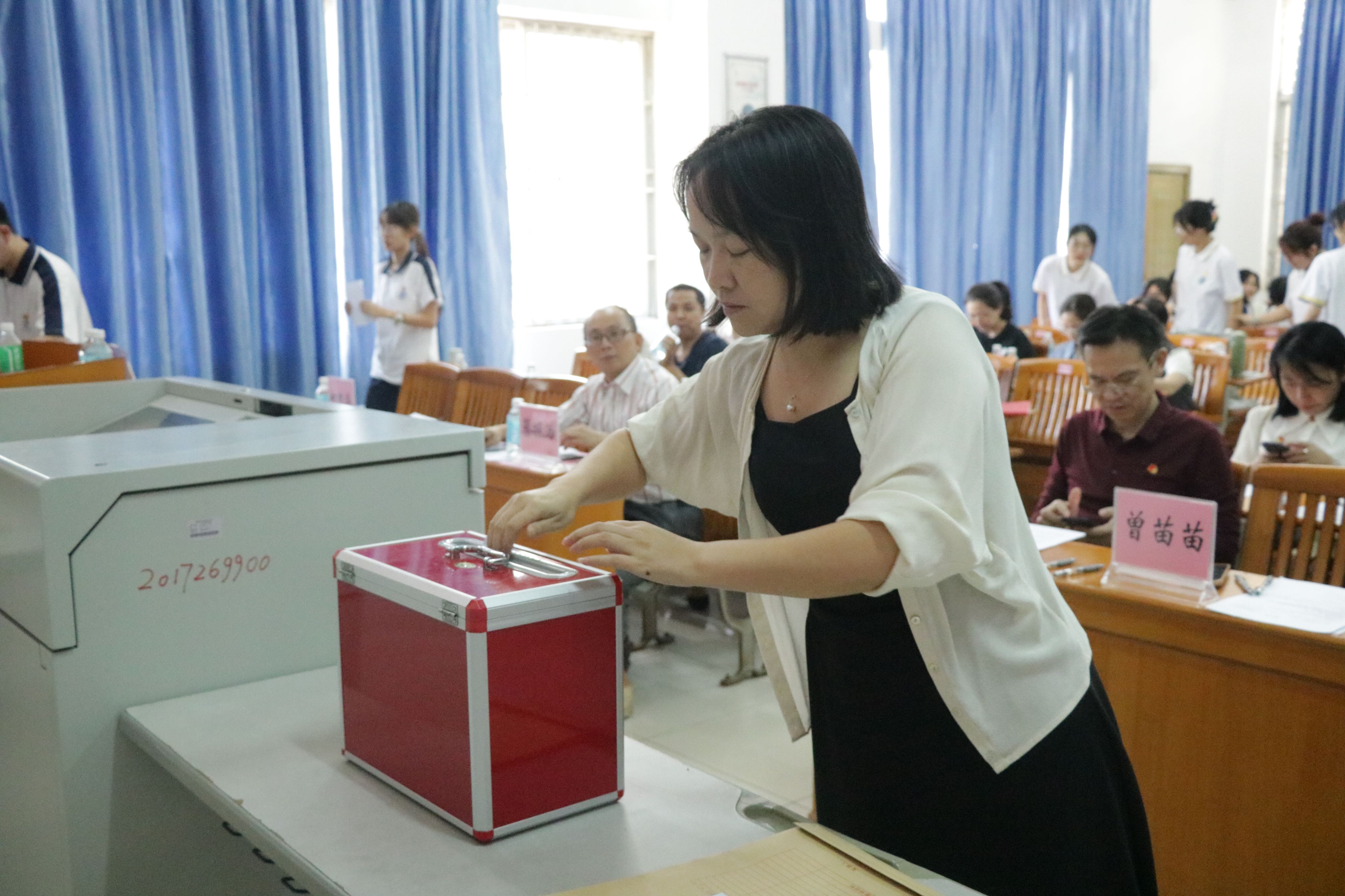 按照程序要求,大会通过了选举办法、提名的候选人及监票人名单。在主持人介绍完候选人简介以及注意事项后,党员们庄重有序地进行投票。经过严谨细致的票数统计,文雪、王琳、何秀华、赵书栋、曾苗苗、蔡振治、廖悦诗等七位同志光荣当选为学院新一届委员会委员。大会在国际歌声中圆满落下帷幕。