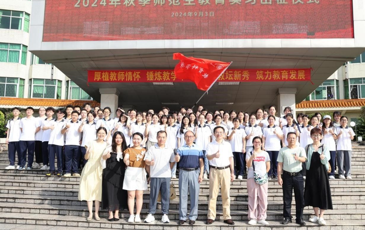 9月3日,永利y234552024年秋季师范生教育实习出征仪式在国砚广场举行。学校领导、相关职能单位负责人出席仪式,副校长肖起清主持。我院党委书记蔡振治、院长文雪以及教育实习指导教师和学生代表参加了此次仪式。