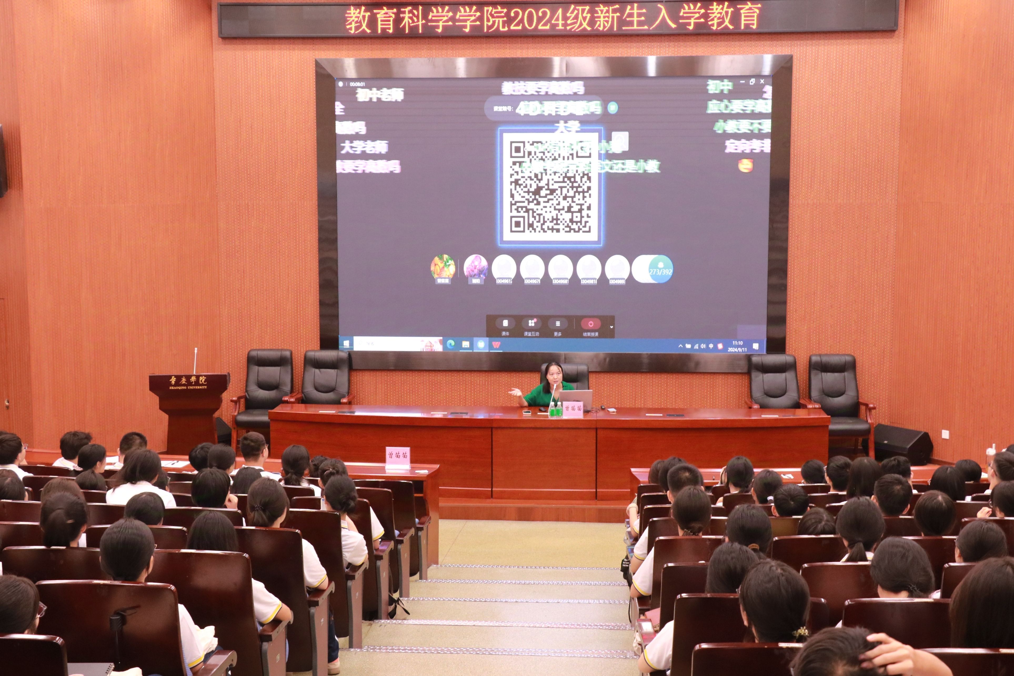 学院副院长曾苗苗以教学经验从专业教育的视角为新生们细致地分析各专业的培养目标、课程要求及未来发展前景,介绍了学院的雄厚师资、丰硕成果,以及学生成长与发展的多元化途径。曾院长特别提出了“大一加法、大二确定、大三减法”的成长策略,鼓励学生们通过前三年的学习和实践将理论知识与实践经验相结合,并在大四阶段应用于实际工作中,为步入职场做好充分准备。她强调,同学们要清晰地规划未来发展方向,养成良好的学习习惯,掌握高效的学习方法,努力成为“传道授业解惑”的优秀教师。