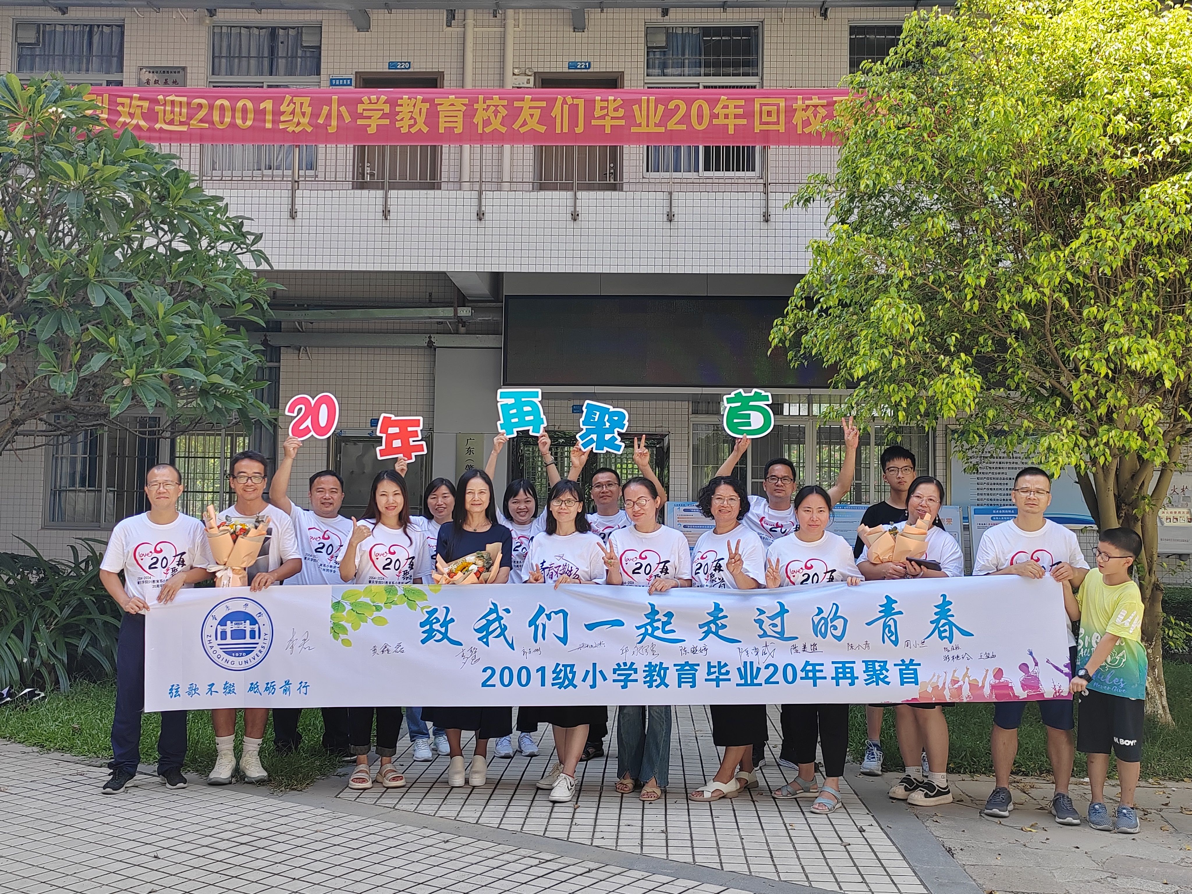 2024年8月10日,阳光洒满永利y23455,2001级小学教育1、2班14名校友在毕业二十周年之际重返母校,共叙同窗情谊,追忆青春年华,班主任曾君老师及部分教师代表出席,与校友们共襄此乐。