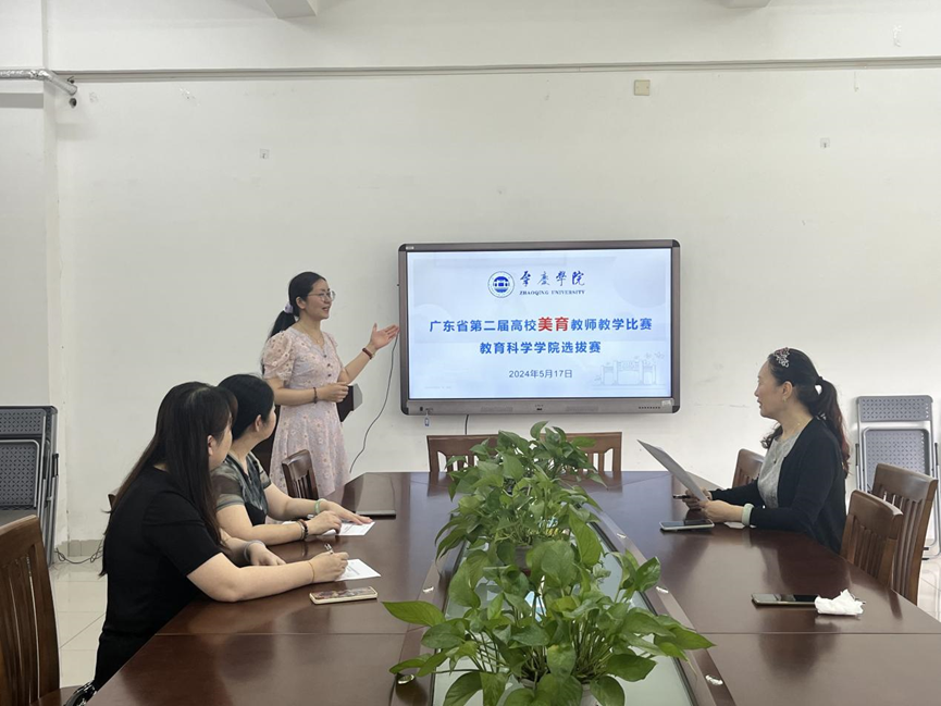 围绕立德树人根本任务,以加强师德师风建设、锤炼教学基本功为着力点,充分发挥教学基本功比赛在提高美育教师队伍素质中的示范引领作用,同时为校级、省级美育教师教学比赛推荐优秀教师,2024年5月17日上午,yl23455永利集团在第三教学楼218室举办了广东省第二届高校美育教师教学比赛选拔赛。学院学前教育系、教育学系相关老师参加比赛。