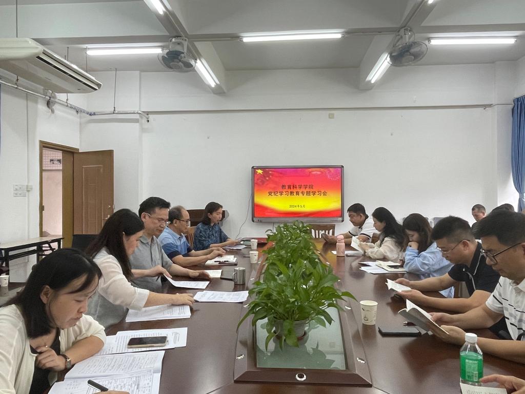 5月23日,教科院在218会议室召开党纪学习教育专题学习会,会议由学院党委书记蔡振治主持,全体教师党员参加会议。