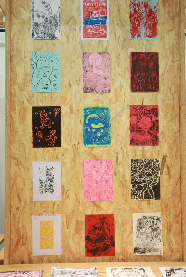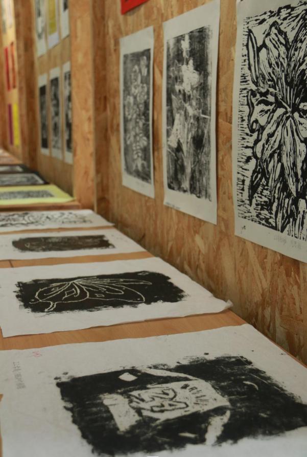 此次美术课程由全国优秀教师、广东省特级教师黄福生授课,在课程上同学们认真学习,互相切磋,积极探讨,在课程结束后举行作业汇报画展,内容分为色彩、国画、木刻版画、剪纸四个部分,经老师和同学一起挑选出200余件优秀作品进行展览。