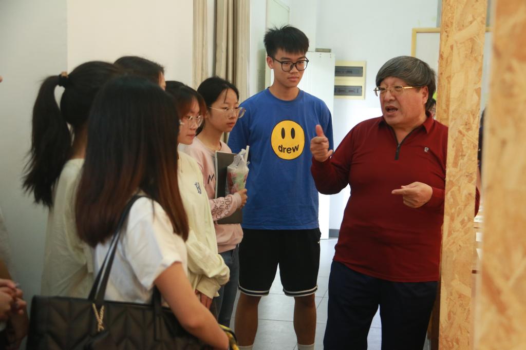 参观过程中,领导老师们认真观看学生作品,与学生们亲切交流,了解不同风格的作品内涵、创意来源,围绕作品内容进行探讨交流。领导们对学生作品表现的人文内涵与创作理念给予了高度评价。