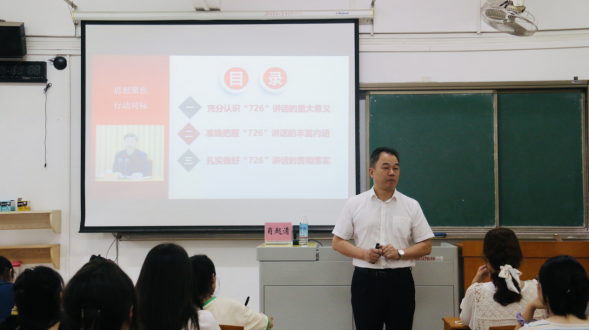 在课堂上,肖起清带领同学们深入学习贯彻2022年7月26日习近平总书记在省部级主要领导干部专题研讨班上的重要讲话精神,就“7·26”讲话的重大意义、丰富内涵、贯彻落实三个部分展开讲授。他结合我国新农村教育发展现状及未来趋势,以及国内国际形势,综合分析广东省当前基础教育发展形势,强调高校培养小学教育专业等基础教育师范生的重要战略意义,引导同学们思考当代大学生(特别是师范生)的责任与使命,如何在世界之变、时代之变和历史之变中担当民族复兴大义,在此基础上,肖起清结合我校人才培养的优势和特点,指导同学们对大学期间的学习目标和发展路径进行更清晰的规划。