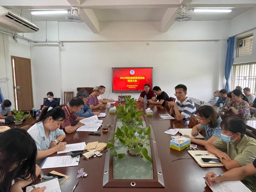 本网讯 8月27日上午,为深入贯彻落实《永利y234552022年纪律教育学习月活动实施方案》文件要求,我院在院办218会议室召开纪律教育学习月活动动员学习会。我院党政领导、全体教职工出席本次会议,会议由党委书记谢佐永主持。