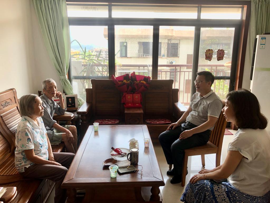 在中国共产党成立100周年纪念日即将来临和党史学习教育不断深化之际,6月27日,学院党委副书记刘远君,党委委员、党政办公室副主任廖悦诗,专职组织员何秀华慰问了离退休老党员刘桂眉,感谢刘老师为党的事业和学院发展作出的贡献,向刘老师一家致以节日的问候。