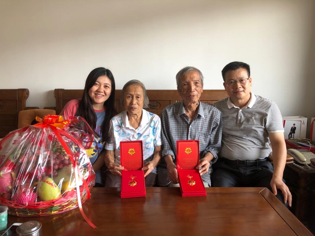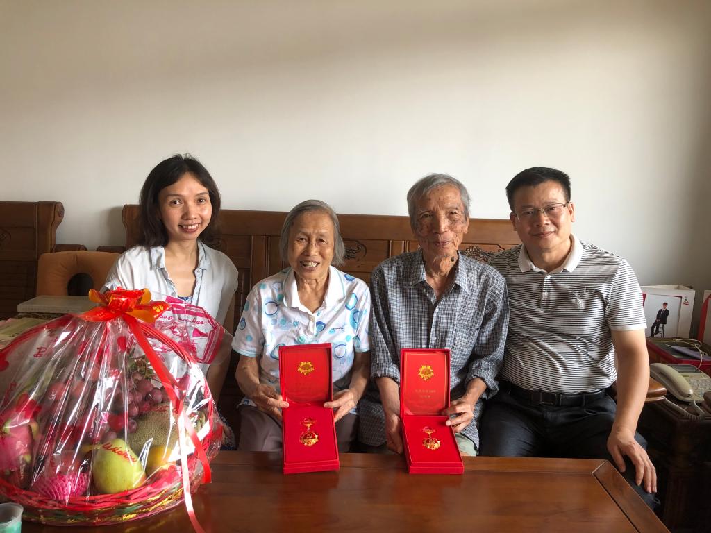 刘桂眉老师系我院第一名退休的老党员,曾任我院前身——教育心理公共课教研室主任,是一名党龄65年的老党员。刘老师感谢学校及学院对老同志们的关怀,夫妇热情地向我们展示了党中央颁发的“光荣在党50年”纪念章。