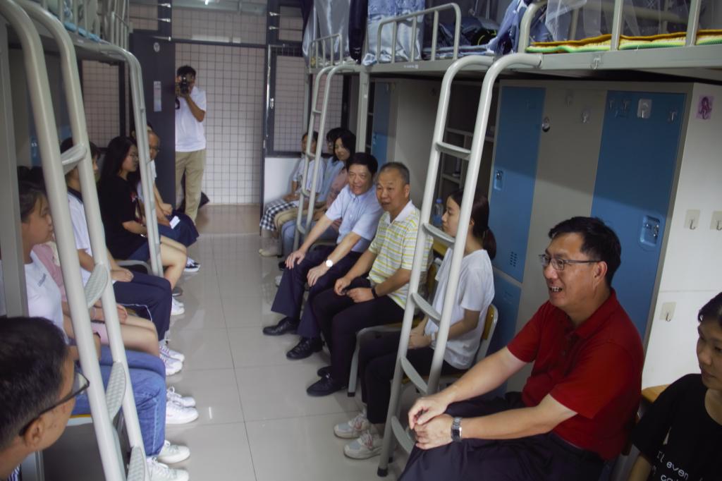 下午四点,学校党委曾桓松书记、黄劲松副书记、谢冠华副书记在学院领导陪同下,到兰蕙书院新疆生宿舍进行慰问,曾书记向同学们详细了解入学的需求,叮嘱同学们注意宿舍用水用电安全、疫情期间需注意卫生防控,对新生提出的问题一一进行解答。晚上,刘远君副书记带领新生班主任、辅导员巡查新生宿舍,及时记录宿舍门锁、窗户的问题,并对学生进行学习勉励。