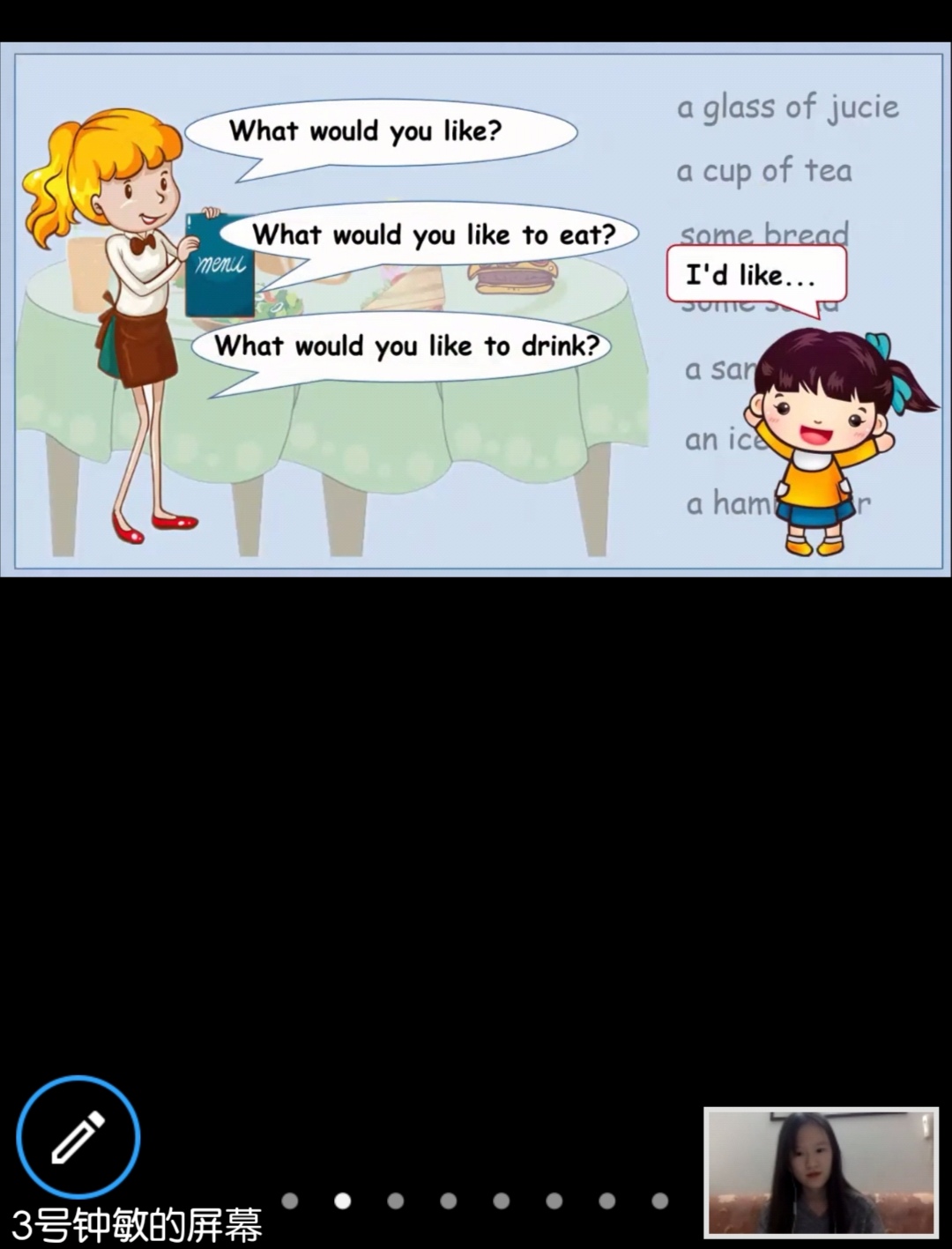 三等奖:17小学教育1班钟敏《What would you like》