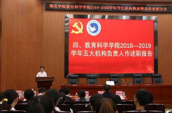 在2018-2019学年,教科院各学生机构围绕专业技能和社会服务开展各项活动,取得丰硕成绩,团队活力不断提升,其中,学生会获肇庆市优秀学生会;律委会、健促会、易班分别获得校级表彰。原团委副书记戴维纬获肇庆市优秀共青团员称号。并在上学年末成立新闻中心,继续开拓网络青年工作阵地。感恩遇见,感谢并肩。此次换届大暨表彰大会的成功举办不仅为学院注入新鲜血液,还充分调动了学生干部的工作热情。希望新一届的学生干部能不负领导、老师与同学们的重托,更好地为学院服务。