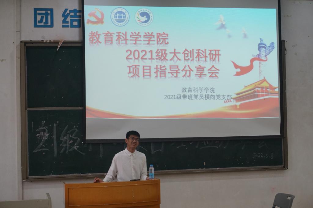 (本网讯 通讯员/张静宜 审核/何秀华)2022年5月8日下午,yl23455永利集团2021级学生科研项目动员及经验分享会在第二教学楼704室举办。本次会议由学院带班党员横向党支部主办,2021级学生预报名192人,实际到场210人。2018级应用心理学专业钟柔柔、2018级小学教育专业成彪、2019级学前教育专业梁曦文以及2018级数字媒体技术专业骆恺翔作为主讲人出席本次会议。2021级带班党员刘甜甜主持会议。