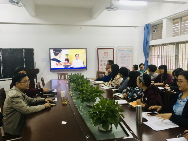 最后,教工党员观看了关于学习习近平总书记视察广东重要讲话精神的网络视频材料。