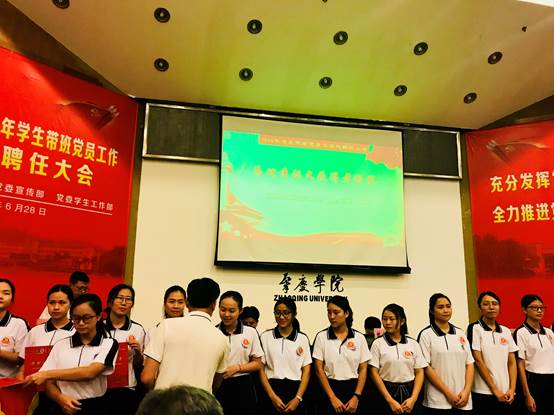 为热烈庆祝中国共产党成立97周年,进一步推进党建育才工程,更好发挥学生带班党员的先锋模范作用,6月28日,学校召开2018年学生带班党员工作总结与聘任大会。
