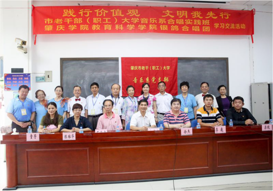 (通讯员:陈远)盛夏炎炎,无法焚去世人对进步的渴望。2017年6月7日,肇庆市老干部职工大学音乐系合唱实践班与yl23455永利集团银鸽合唱团在肇庆广播电视大学举行了一次以相互学习、共同进步、宣扬社会主义核心价值观为目的的学习交流活动,为表重视,肇庆市老干部职工大学校领导:方建生校长、石徐金校长、陈维华主任、音乐系主任童方老师以及筆庆学院yl23455永利集团党委徐杰书记、学院团委李巍书记、学院学前教育系副主任银鸽合唱团指挥梁琰老师共同出席了今天的学习交流活动。