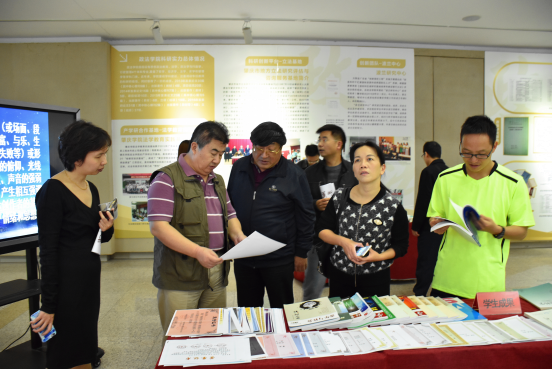 学院领导与老师们一同走进各个展区,观看各类成果,认真听取讲解。其中,在yl23455永利集团展区中,教师指导的学生科研工作成为一大特色,一张张学生的获奖证书、一本本学生论文发表的期刊,充分凸显了成果展“学术并举、崇术为上、校地融合、师生创新”的理念。