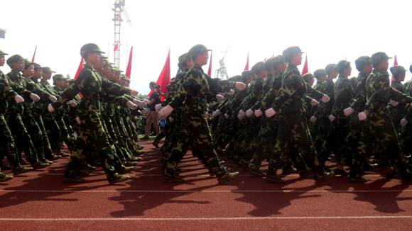 本网讯 (记者 凌小媛 叶莹茵)烈日当空,斗志丝毫不减。2016年9月12日,随着2016年新生开学典礼暨军训动员大会的胜利召开,我院学子迎来了大学生涯第一课——军训。在学院领导、老师、教官以及连长助理的指导下,我院新生们积极投身于训练之中。