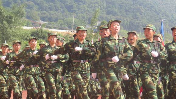 我院345名新生在军训中被分编成4个连队。晨光未现,同学们已经洗漱完毕来到训练场集中,伴着旭旭东升的朝阳,响亮的口号响彻整个校园。在教官和连助严格的操练下,同学们严守军纪,认真完成军训任务,充分表现了当代大学生优秀的风貌。在军训开始的前几天,新生们军姿站立、踏正步等项目的训练就效果显著。学校还安排穿插了消防演练、定向越野等项目的训练。赤日当空,但同学们的热情不减,大家都精神抖擞地参与到了训练当中。