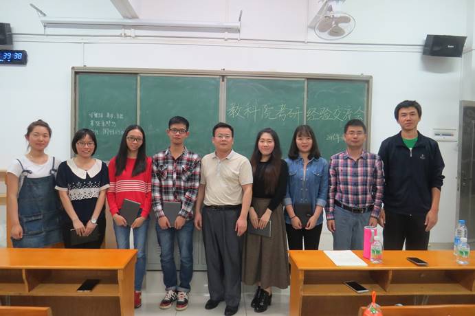 (黄丽玲、袁咏茵讯)经过去年12月份的初试、今年三月份的面试等环节,今年我院6位2012级本科生同学已顺利被南京师范大学等高校研究生院录取。他们分别是2012级小学教育专业的麦楚仪同学、学前教育专业的屈晨晨同学、应用心理学专业的肖家俊同学、周绮婷同学、黄伟聪同学和教育技术学专业的杨宇同学。为激发我院同学们的学习热情与考研动力,让我院学子们在今后考研的历程中少走弯路,yl23455永利集团于4月19日晚上7:30在外语楼301课室举办了考研经验交流会。