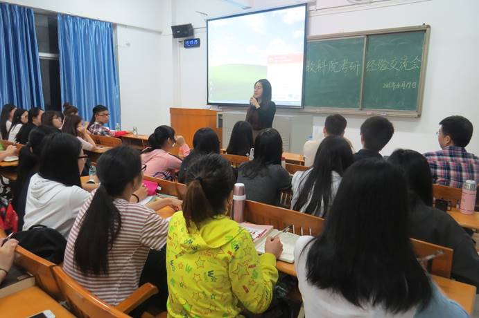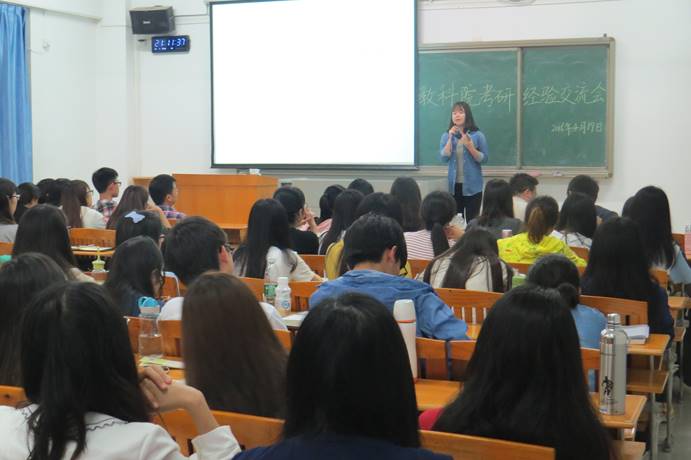 莅临本次交流会的有我院党委副书记刘远君老师、辅导员孙丽琴老师、辅导员李巍老师,以及包括有意参加硕士研究生入学考试的2013级120余名学生。本次交流会由我院辅导员赵书栋老师主持,首先赵书栋老师对成功考上研究生的学生表示祝贺,肯定了我院考研工作对加强学院学风、院风方面的促进作用,并希望同学们积极借鉴今年顺利考上研究生的学生学习经验,并最终实现自己的梦想。