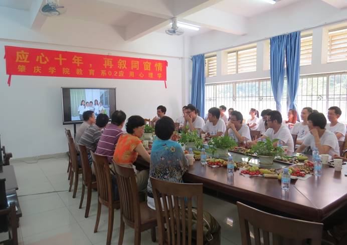本网讯(记者黄佩珊)5月21日,yl23455永利集团02应用心理学本科班、03学前教育专科班共50多位校友在毕业十周年之际怀着激动的心情重聚母校,参加校友聚会和座谈会,重温师恩,共叙友情。学院党委书记徐杰、原学院院长(现校档案馆馆长)梁婉倩、原学院副院长(现校继续教育学院院长)黄曼娜、学院党委副书记刘远君、副院长文雪及罗京滨、李晖、慕容勋等相关任课教师参加了本次交流会。当晚,在外出差的张旭东院长、李炳全副院长也专程赶回学校与校友们相聚。