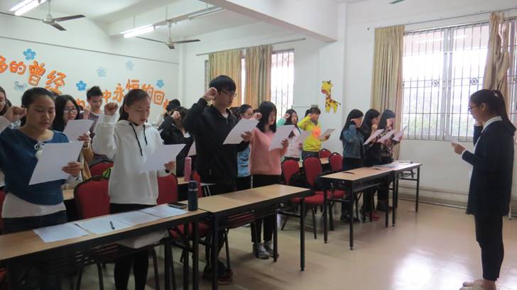 本网讯(记者 陈晚霞 叶莹茵)2015年1月6日17:00,yl23455永利集团在鲁迅楼演示室举行本学期期末考试诚信宣誓仪式。辅导员李巍老师、赵书栋老师出席了本次仪式。参加本次宣誓仪式的还有四大机构学生干部代表和各班学生代表。