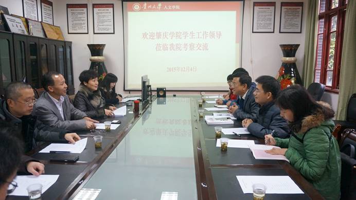 据悉,贵州大学人文学院共设中文、历史、新闻、哲学四个本科专业,在校本科及研究生共一千多名。学工队伍上下一心,学生工作井井有条,值得学习。此次考察活动,对我院的学生工作发展起到了很大的借鉴、参考作用,为我院学生工作品牌化、创新化发展提供了很好的思路与启发。