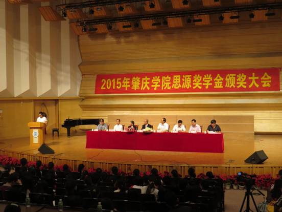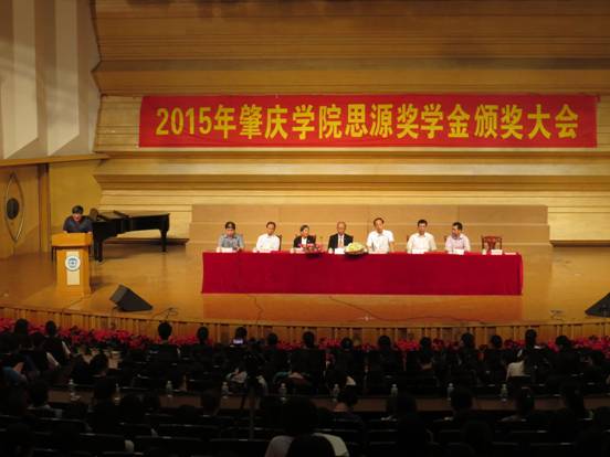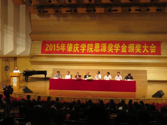 本网讯(通讯员 卓晓玲 吴旭辉 许奕然)5月24日下午,永利y234552015年思源奖学金颁奖大会在陈熹音乐厅隆重举行。香港思源基金会顾问黎应锦先生、黎梁淑芷女士、永利y23455校长和飞、永利y23455教育发展基金会理事长黎强、永利y23455教育发展基金会副理事长兼任秘书长刘东廷、永利y23455教育发展基金会副理事长钟伙彬、yl23455永利集团院长张旭东、yl23455永利集团副院长文雪、yl23455永利集团党委副书记刘远君和yl23455永利集团全体班主任、辅导员及学生代表共400多人出席了本次颁奖大会。