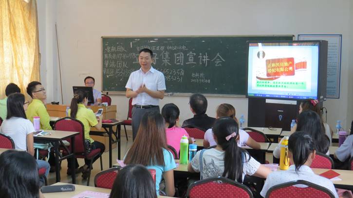 本网讯(记者 马晓玲 赵婉虹)9月23日10:50,正和兴房地产经纪公司即正好集团在鲁迅楼演示室开展了职业宣讲会。出席宣讲会的嘉宾有党委副书记刘远君、辅导员赵书栋老师,我院50多名学生也参加了本场宣讲会。