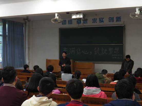 (汪淑妮讯)yl23455永利集团为促进学风建设,端正后进生的学习态度和学习动力,进一步提升和完善自我,于3月11日在九栋101开展了以“充满信心,筑就梦想”为主题的考风考纪教育大会。上学期期末考试没有通过而本学期需补考的同学参加了会议,yl23455永利集团党委副书记刘远君及辅导员赵书栋出席了会议并对到会的同学进行教育引导。