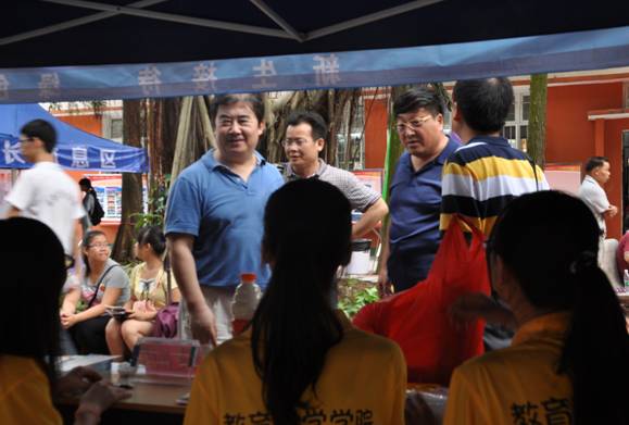 校党委书记曾桓松、校长和飞、校党委副书记叶峥嵘、校党委副书记、纪委书记黄劲松、学生处处长陈向荣、后勤处处长慕容居敏、教科院党委书记徐杰、院长张旭东、党委副书记刘远君、副院长李炳全等领导也先后在主校区和星湖校区了解我院新生的报到和思想情况,并亲切慰问志愿者和工作人员。领导们还亲自走访新生宿舍、食堂并慰问新生。