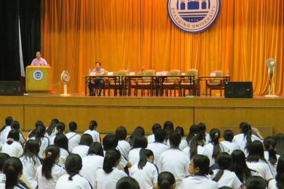 张旭东院长首先为新生致辞。他对2014级新生的到来表示热烈的欢迎和衷心的祝贺,然后向新生重点讲述了大学生应当具备的全颜色:“赤橙黄绿青蓝紫”,应成为一个应用型的全面素质人才。最后希望同学们珍惜宝贵的学习机会,勤奋学习、诚信守纪、开拓创新、敢于赶超,用青春和汗水演绎多彩的校园生活,用绚丽的七色点缀自己的人生和未来。