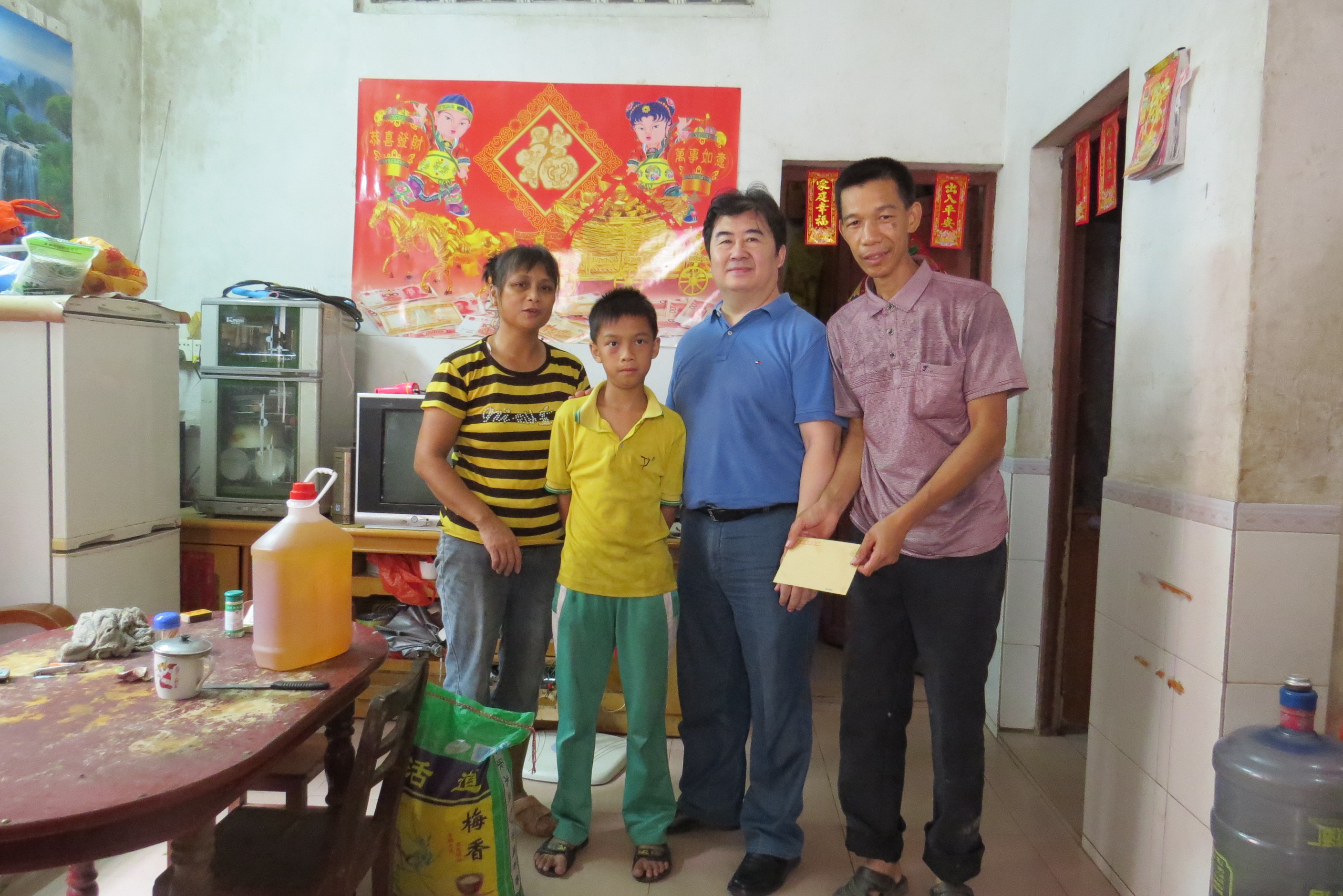 (教科院 讯)为积极配合我校扶贫帮困活动,2014年7月3日,yl23455永利集团党委书记徐杰前往对口扶贫点——广宁县石涧镇横迳社区,进村入户慰问了本院对口帮扶的困难户,并向该户送上慰问金及慰问品,详细了解他们的家庭情况、住房条件、子女读书等情况,并鼓励他们要有脱贫致富的信心,同时围绕如何脱贫致富进行了深入交流。