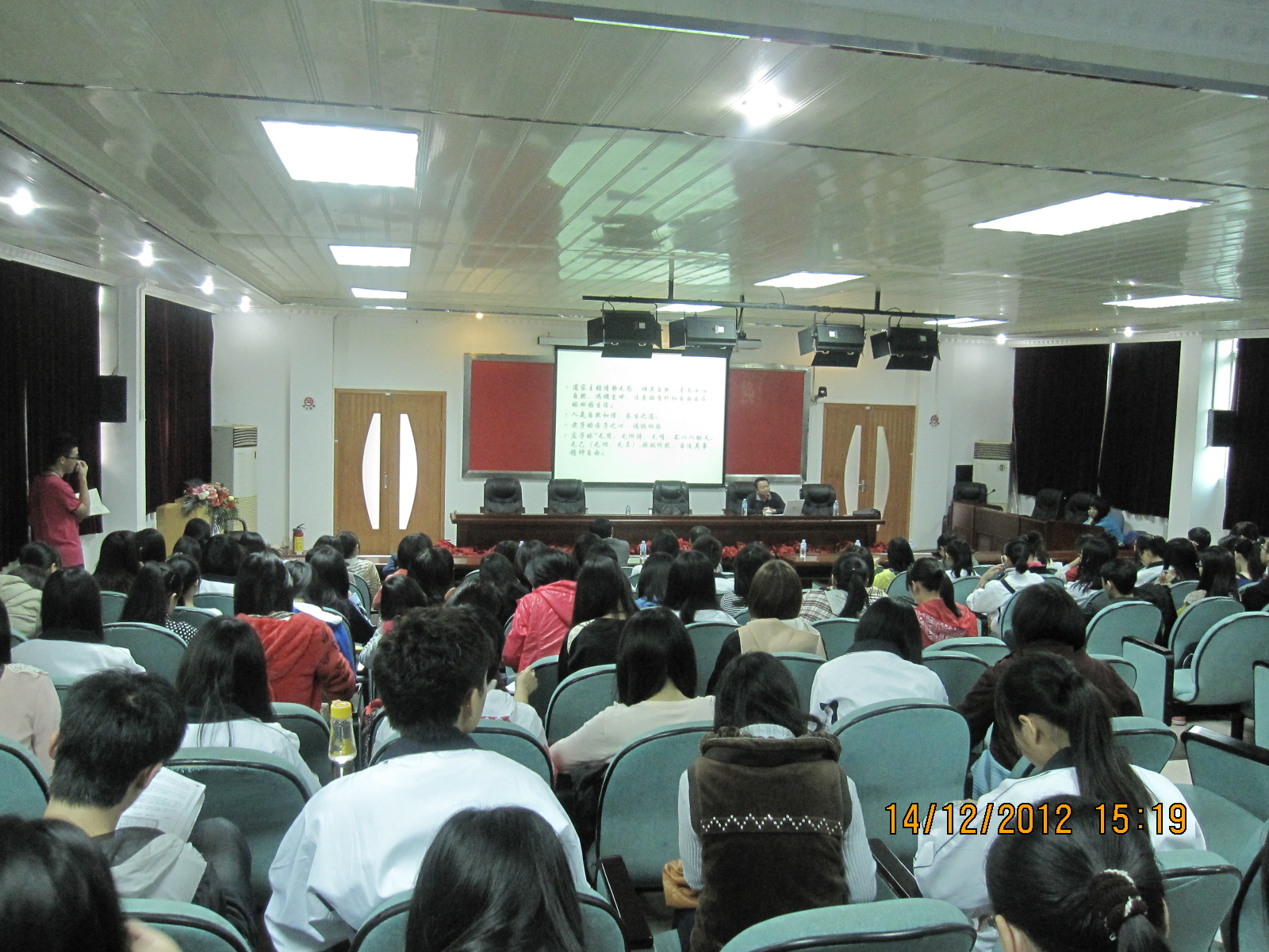 (黄苑妮讯)2012年12月14日下午3点,华南师范大学心理学系郑雪教授莅临我校,在行政楼第二会议室为我校学子开展了主题为“幸福观与幸福论”的讲座。此次讲座由我院岑延远老师担任主持,我校院学生积极参与。