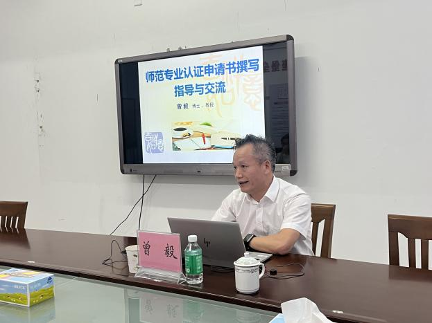 为进一步推进2026年师范类专业的认证申请工作,规范认证材料,提高认证工作效率,10月27日上午,yl23455永利集团在学院507会议室召开2026年师范类专业认证专题辅导会。教学质量监测与评估中心副主任曾毅受邀进行辅导。学院党委书记蔡振治、副书记何秀华、学院分管教学工作副院长黄华、各专业系主任以及教师代表参加会议。