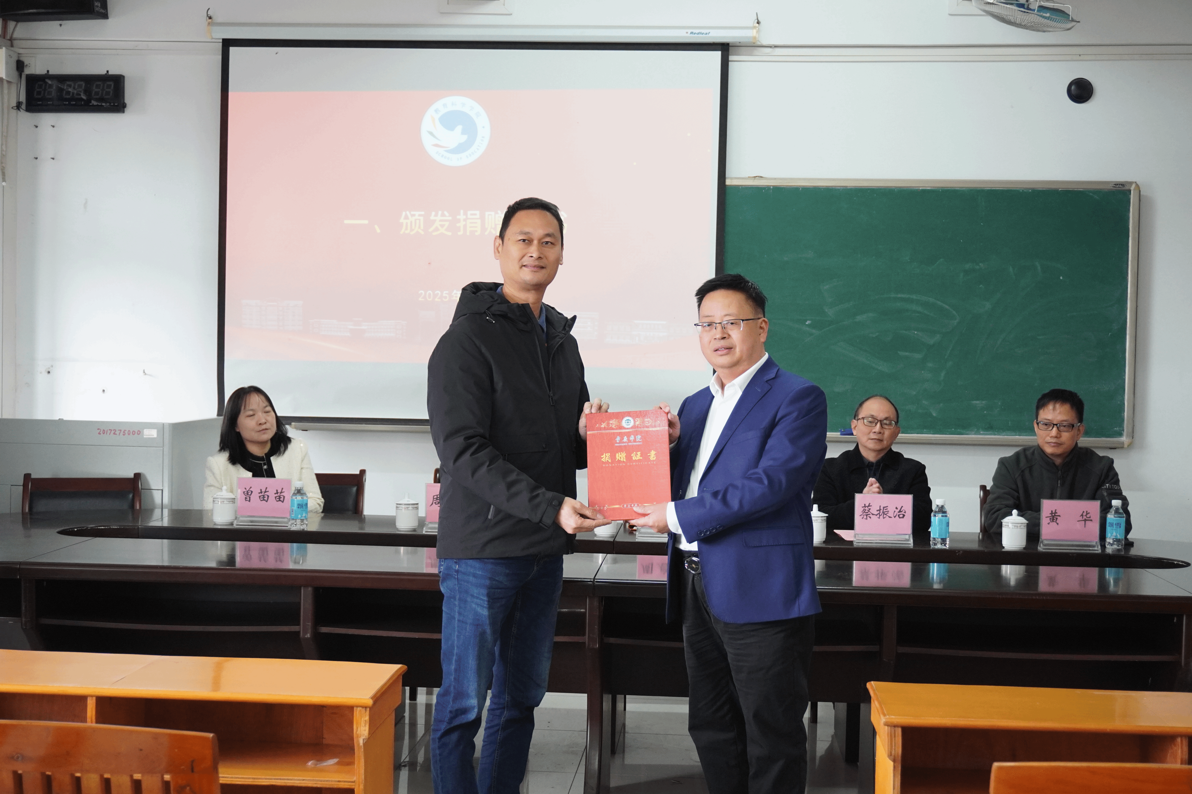 仪式议程有序推进,周建文秘书长为周启斌先生颁发捐赠证书,致敬其教育情怀;学院党委书记蔡振治宣读表彰决定并公布获奖名单;参会领导嘉宾共同为获奖学生颁奖,现场掌声阵阵,饱含对学子们学业成绩的肯定与未来成长的期许。
