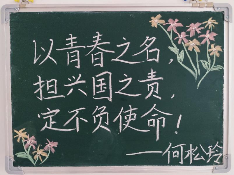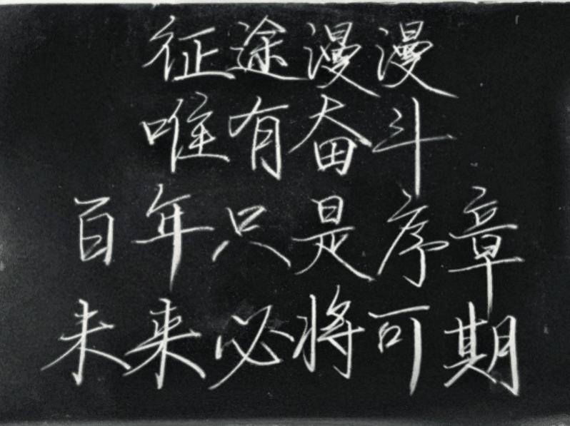 本次活动沿袭了律委会举办多年“三言两语书真情”活动,但不同于以往明信片、小纸条、朋友圈留言等形式,今年我院确定了以写黑板字拍照上传的形式进行。既结合了师范生粉笔字日常练习的特点,作为载体的小黑板也为“三言两语”书写的布局和整体结构提出了潜在的要求。本次活动得到同学们的积极响应,共收集到作品94份。内容包括了学习党史后的感悟、对榜样的景仰、对青春的起誓、对时代的承诺等,苍劲有力的字体,整洁舒适的排版,缤纷灿烂的点缀,磅礴大气的誓词,让人感受到文字与书写的力量。