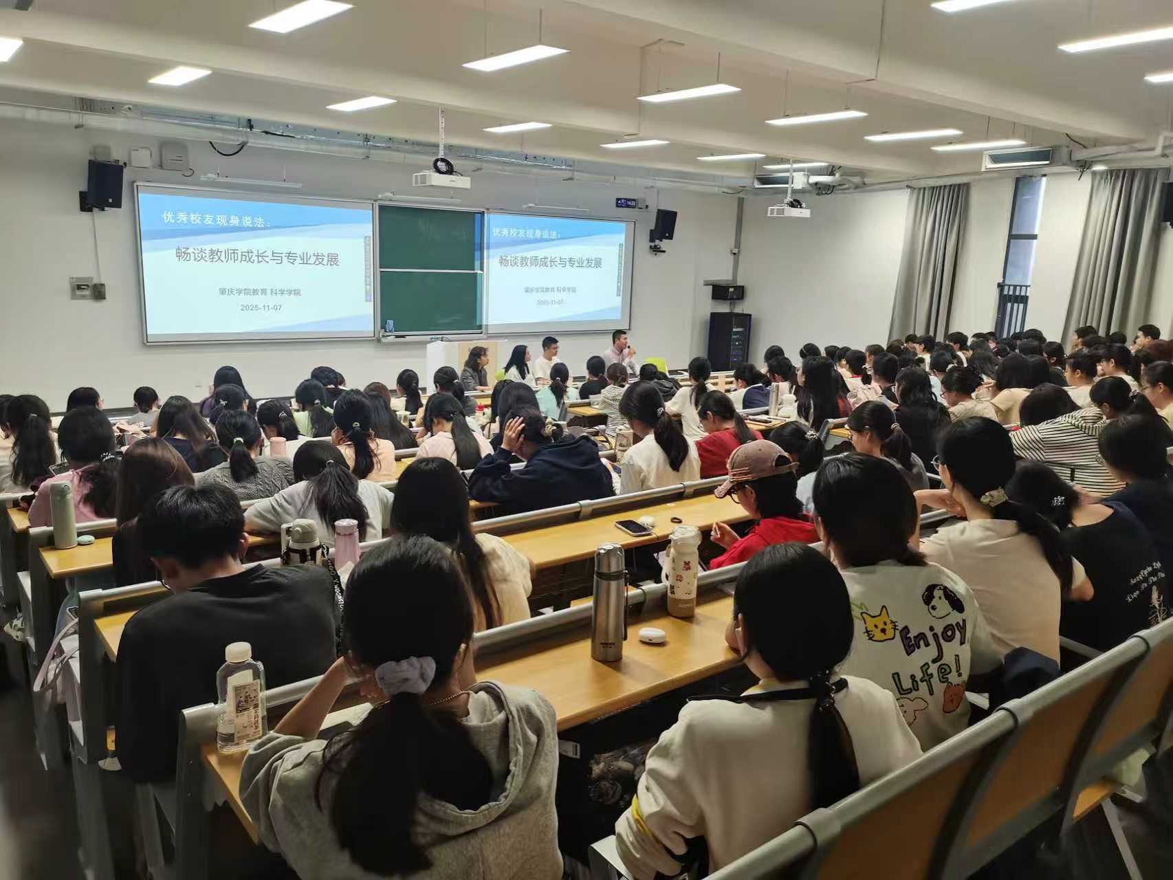 何秀华副书记对两位优秀校友关注学院发展并回馈学院的善举表达了感谢,并指出,两位校友在校期间就是努力学习、积极求索的学生典范,希望在座的学生们在大学学习时,就应树立明确的职业目标,向优秀看齐,为优质就业做好储备。学生们表示,本次校友分享不仅强化了师范生对教师专业性的理性认知,对具体教育管理问题的全面思考,更有效激发他们投身教育事业的责任感和使命感。