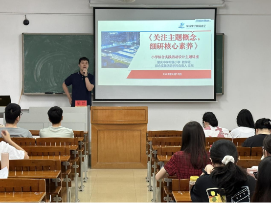 4月18日,肇庆中学附属小学综合实践课程带头人梁然老师为2021级小学教育专业学生进行了一场题为《关注主题概念,细研核心素养》的专题报告。