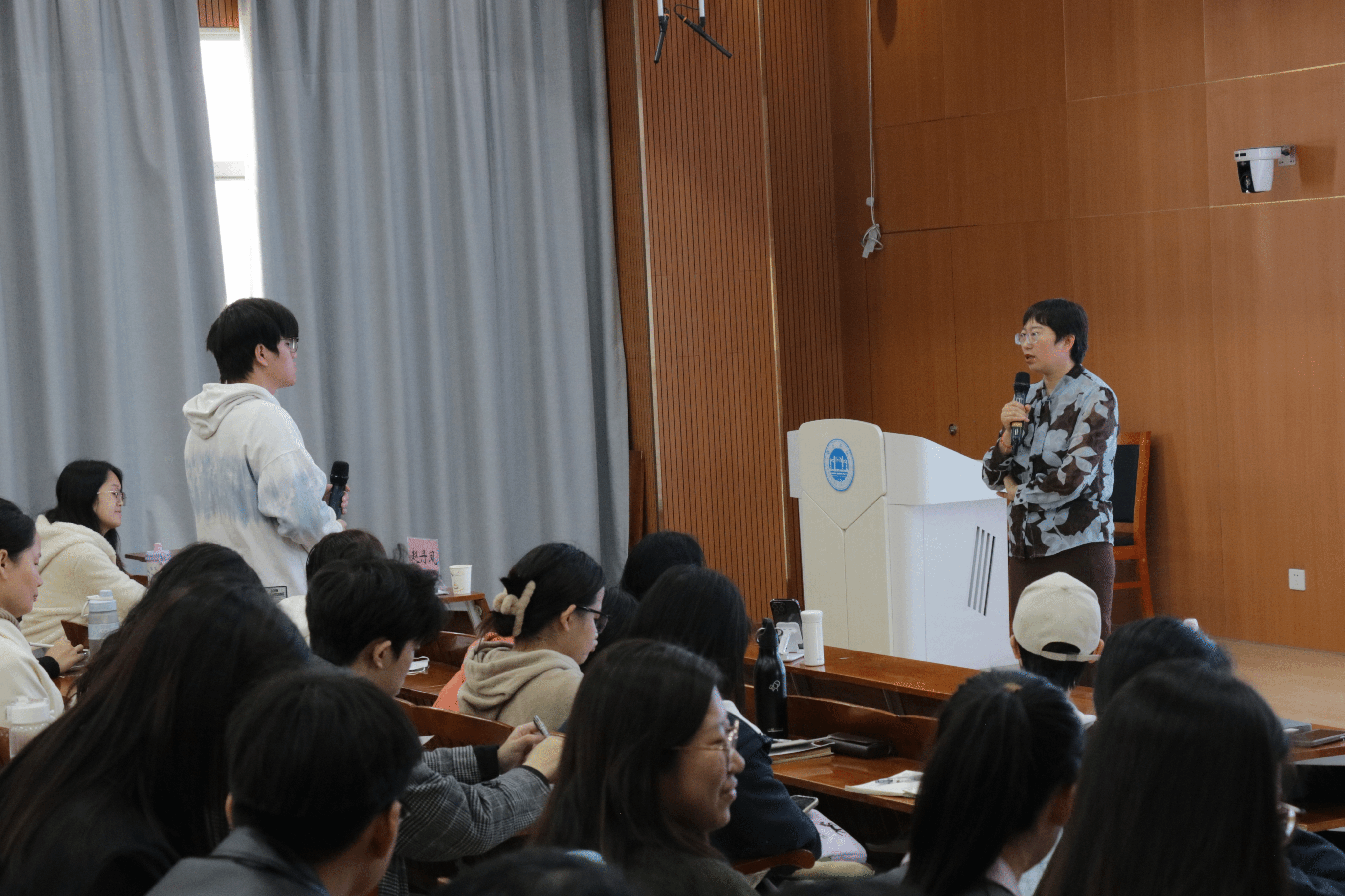 接着,赵博士通过工作坊示例,展示了心理剧在实际应用中的创造力和自发性,以及如何通过心理剧帮助个体探索内心世界,促进情感表达和自我成长。赵博士在讲座中不仅详细讲解了神话心理剧的应用方向,还针对现场老师及同学们的提问进行了深入阐述,从而进一步加深了参与者对神话心理剧的理解。