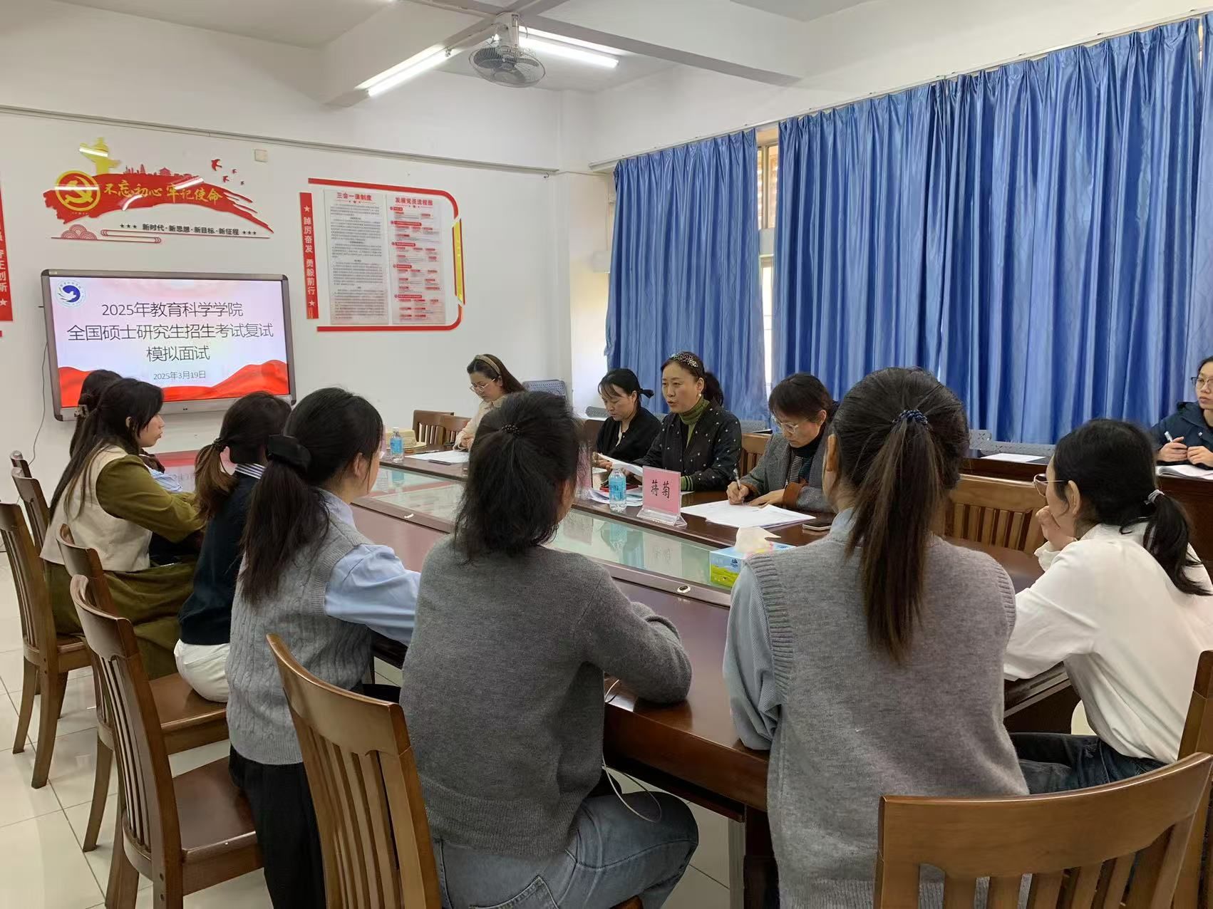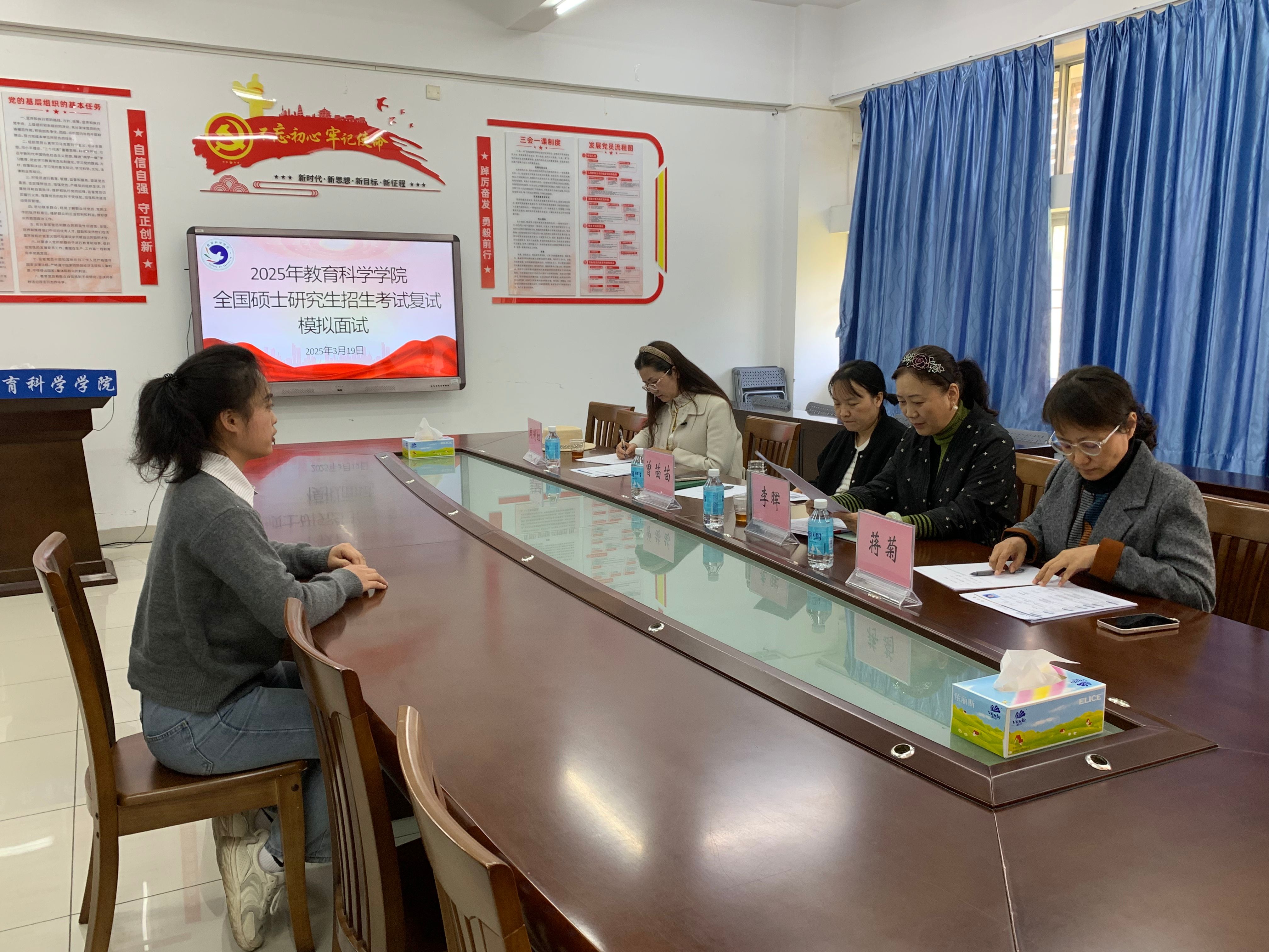 为全面提升考研学子复试竞争力,yl23455永利集团于3月19日组织开展2025年全国硕士研究生招生考试复试模拟面试。学院副院长曾苗苗、学前教育系李晖教授、小学教育系蒋菊副教授、应用心理学系周彩虹副教授等专家组成面试团队,为考研学子提供专业指导。