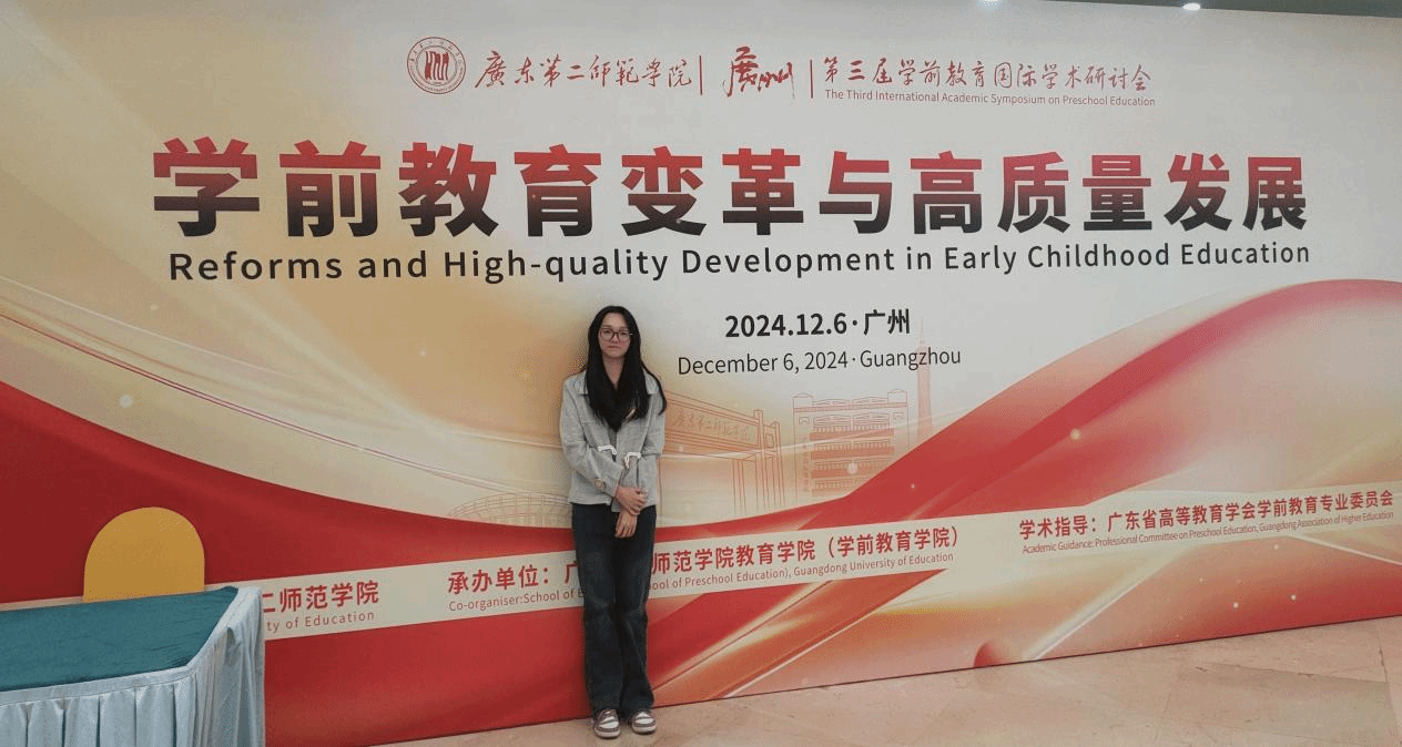 12 月 6 日,由广东二师教育学院(学前教育学院)承办的广东第二师范学院第三届学前教育国际学术研讨会在广州举行,会议主题为 “学前教育变革与高质量发展”。此次会议吸引了国内外众多学前教育领域的专家学者、幼儿园园长、幼儿教师及行政工作者参与,教科院 2023 级教育管理方向研究生叶洁玲参会。