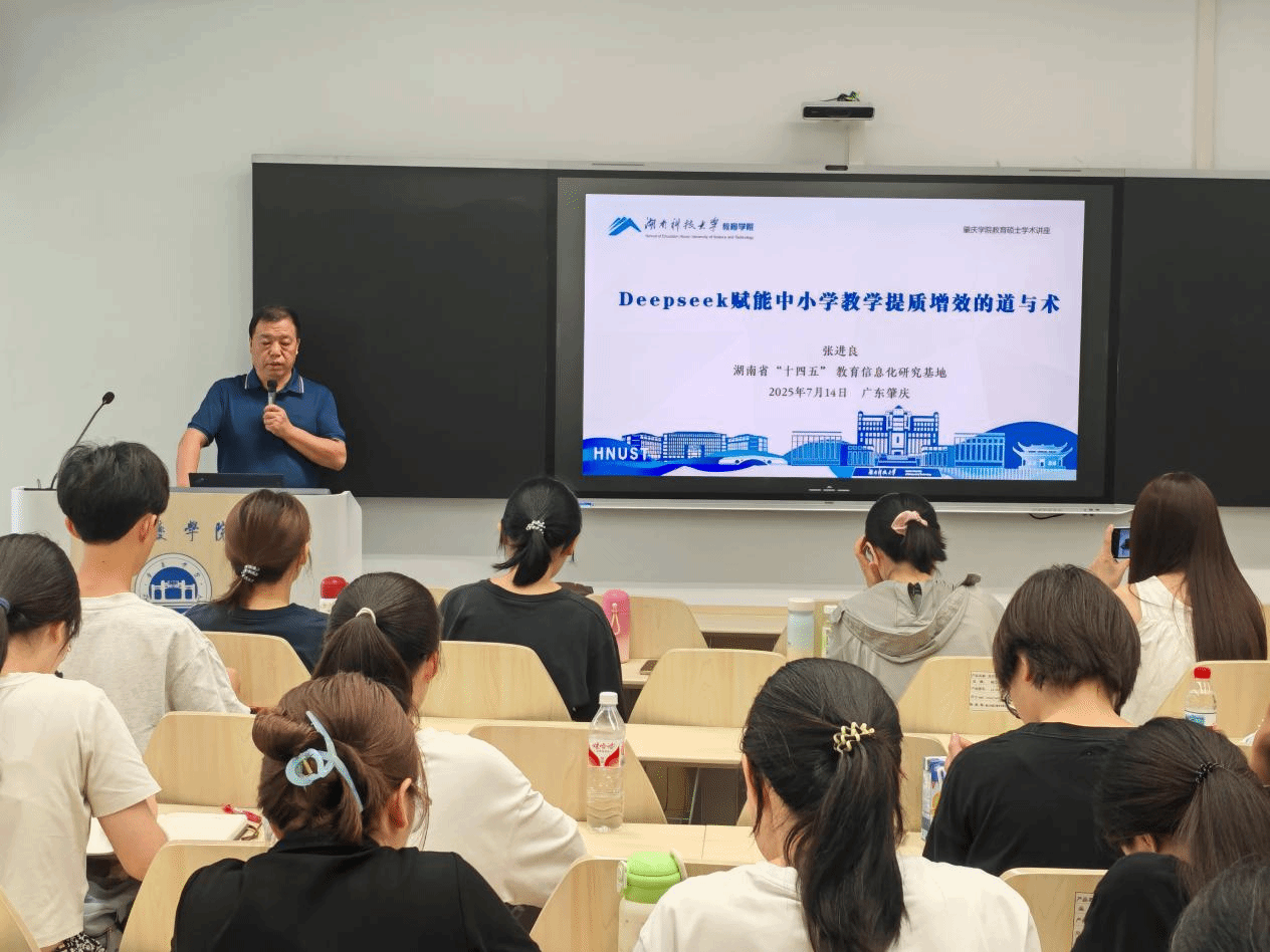 7月14日,yl23455永利集团特邀湖南科技大学张进良教授莅临举办题为“Deepseek赋能中小学教学提质增效的道与术”的专题讲座。2024级教育硕士及部分青年骨干教师共同参与了此次讲座。