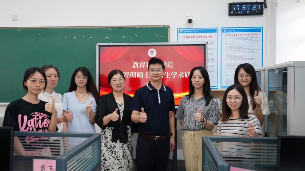 5月15日,yl23455永利集团举行了第四期教育管理硕士研究生学术研讨会。夏泉源老师、戴玉老师和23级全体教育管理硕士研究生参与了本次会议。两位非全日制同学姚锦颖和黄漪琪分别就以“教师科研能力”为主题,对她们在一线工作的教育研究成果进行汇报,会议由黄奕琼同学主持。