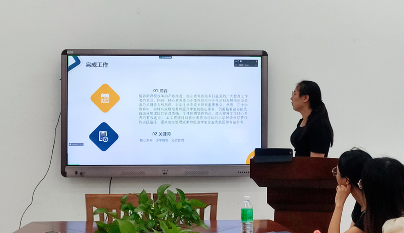 赵严严同学汇报了她最近的研究成果、阅读的文献和下一步计划。她的研究聚焦于以核心素养为导向的小学分层班级管理,从意义、关系、策略和总结几个方面展开阐述。接着,她分享了两篇关于班级分层管理相关的文献,从中吸取了宝贵的研究思路和方法。通过反思自己的研究成果和所阅读的文献,她提出了自身的疑问和不足,进一步明确了下一步的学习计划。