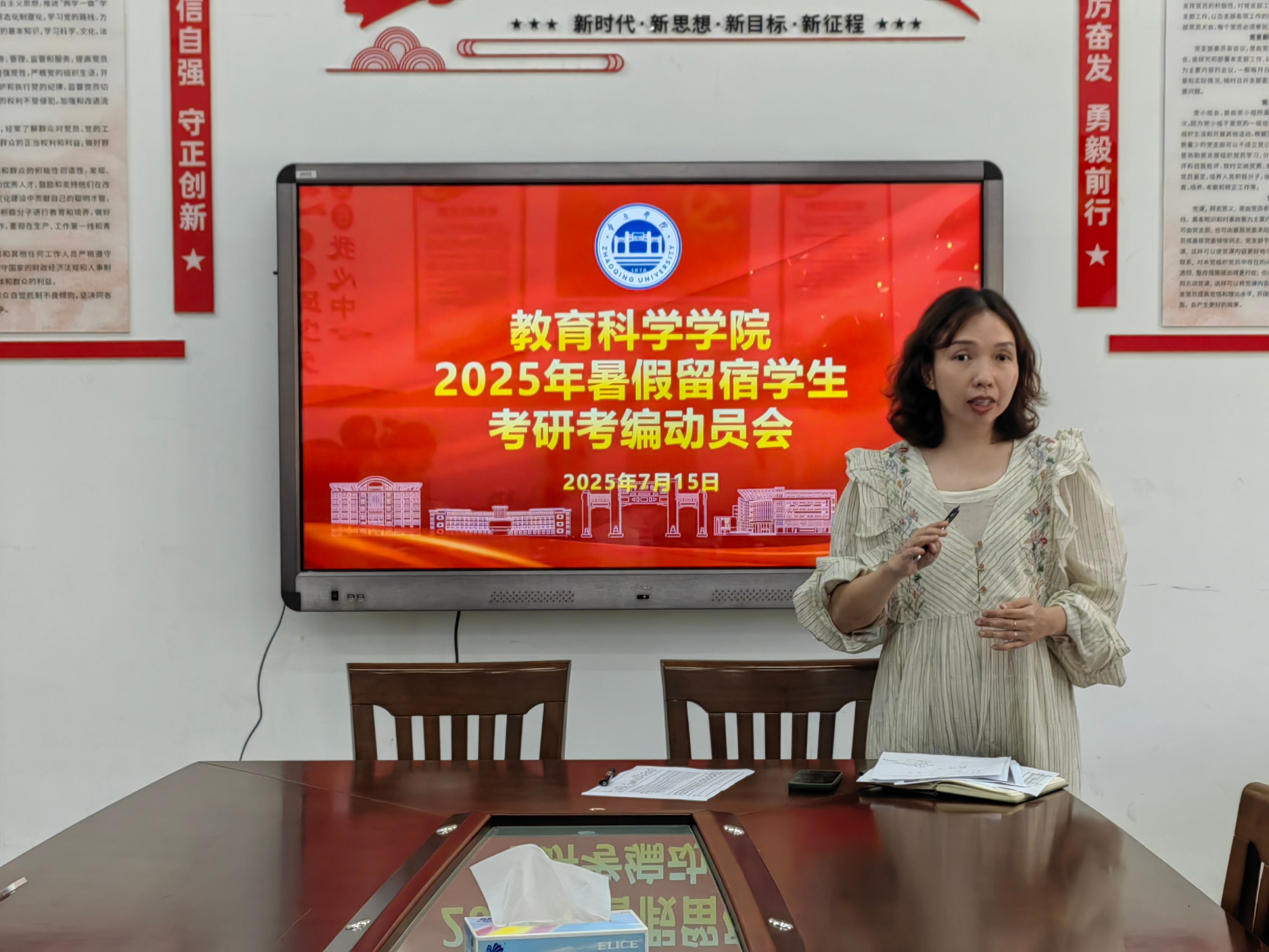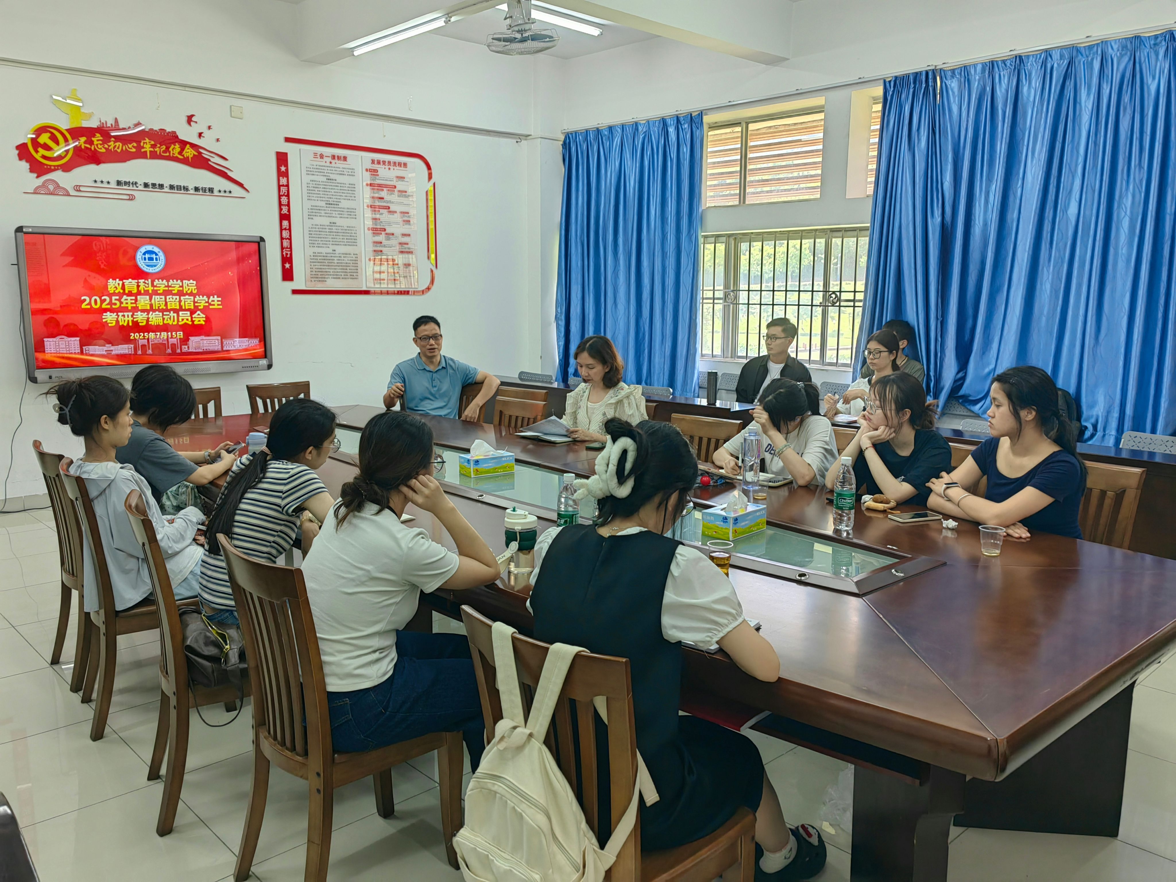 7月15日下午,我院在第三教学楼218会议室召开2025年暑假留宿学生考研、考编动员会。党委副书记何秀华、副院长黄华,辅导员雷瑞虹出席,考研、考编暑假留宿的学生参会。