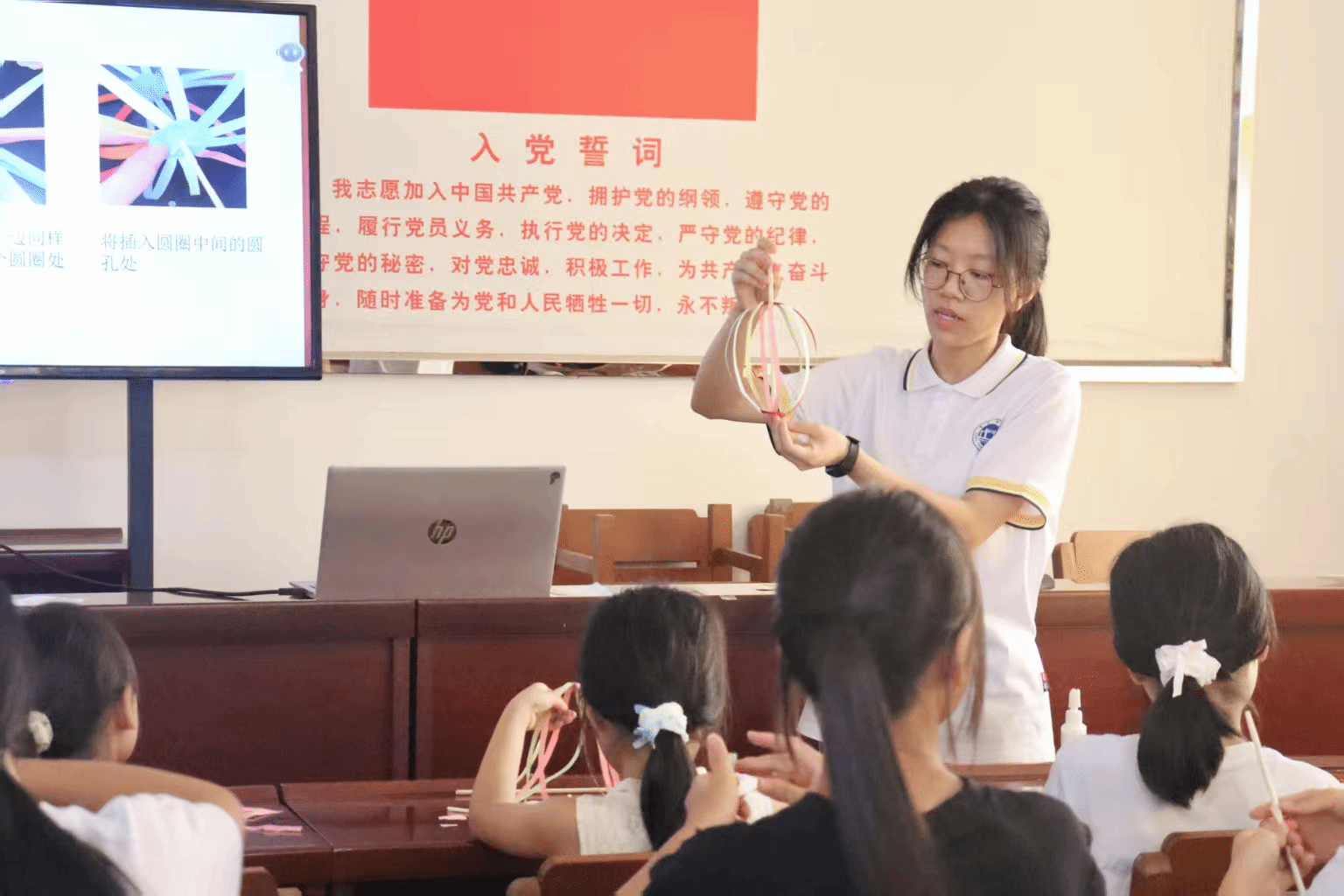 红色旋律、安全守护与文化传承三重奏。《律动山河·音颂中华》课堂,奥尔夫音乐视角下的《大中国》红色主题课程别开生面,激昂的旋律,爱国情感在音符跳跃间澎湃涌动。在《地震侦探,破解振动密码》课堂上,志愿者借助模型演示和互动实验,将安全意识扎根孩童心田。《巧手生花,翻转古今》课堂上,一件件稚拙却充满童趣的作品从指尖诞生,古老技艺的魅力在传承中焕发新生。
